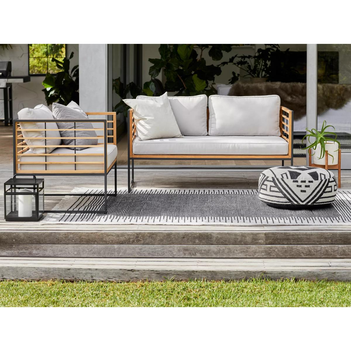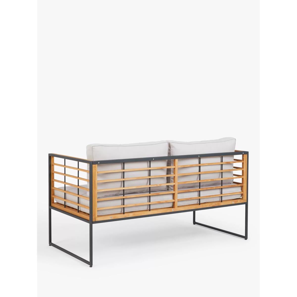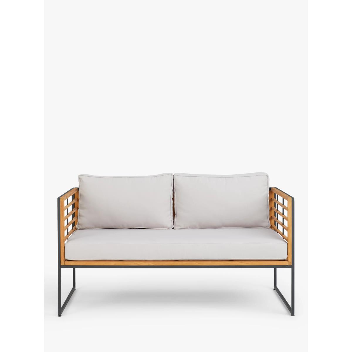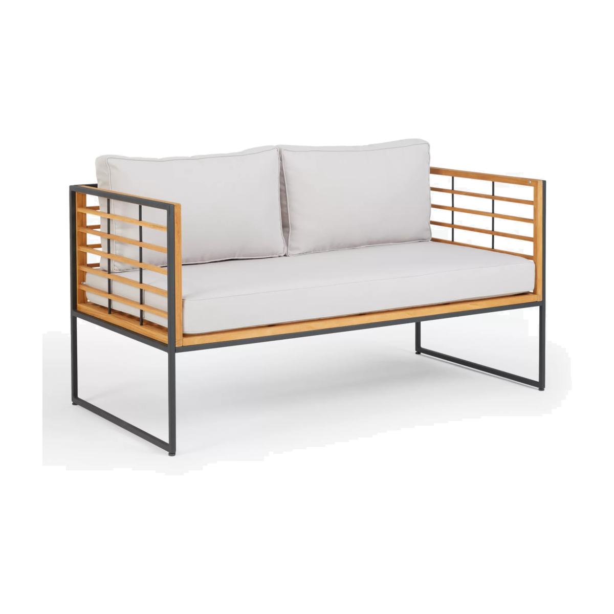 Our Vega range of garden furniture is a contemporary design made of hardy teak wood and robust zinc-coated steel frames, making the furniture durable and weather-resistant. A slatted design on a minimalist frame, this sturdy two-seater sofa is able to withstand a weight of 50 stone (320kg), exceeding the industry standard. The sofa comes with comfortable shower-resistant seat and backrest cushions. To extend the product life and appearance, it is recommended to use a garden furniture cover or store the furniture in a cool dry, well-ventilated place such as a garage or shed over winter or during periods of unseasonal weather. Ensure that the furniture is clean and completely dry before storing. Key features: 2-seater garden sofa Durable and weather-resistant Contemporary slatted design made of teak wood Robust zinc-coated steel frame withstands 50 stone Shower-resistant seat and backrest cushions Matches furniture in our Vega range Choose the perfect outdoor furniture We have a selection of wooden furniture for you to choose from which will suit the home or garden. Below are a few options to consider when choosing your perfect outdoor furniture. TeakA premium and popular wood with an attractive appearance which ages beautifully. Strong, durable and resistant to rot and decay, this furniture requires little maintenanceEucalyptusDistinctive scent and appearance which darkens as it ages. Provides similar natural benefits to teak including moisture resistance, hardness and durability. It's plentiful in supply which makes the furniture an inexpensive choice. AcaciaNaturally durable, this wood is incredibly hard and is unlikely to suffer damage during everyday use. It provides similar natural benefits to teak, yet unlike many other hardwoods, acacia is also relatively fast growing which minimises the environmental impact.