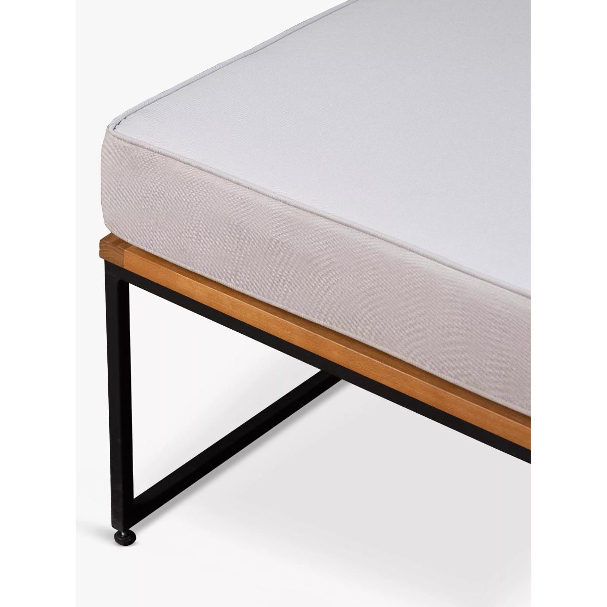 Our Vega range of garden furniture is a contemporary design made of hardy teak wood and robust zinc-coated steel frames, making the furniture durable and weather-resistant. The Vega square footstool has a slatted top and minimalist frame. It comes with a comfortable shower-resistant seat cushion which can be removed when using the footstool as a low side table. To extend the product life and appearance, it is recommended to use a garden furniture cover or store the furniture in a cool dry, well-ventilated place such as a garage or shed over winter or during periods of unseasonal weather. Ensure that the furniture is clean and completely dry before storing. Key features: Square garden footstool converts into a side table Durable and weather-resistant Contemporary slatted design made of teak wood Robust zinc-coated steel frame Shower-resistant seat cushion Matches furniture in our Vega range Choose the perfect outdoor furniture We have a selection of wooden furniture for you to choose from which will suit the home or garden. Below are a few options to consider when choosing your perfect outdoor furniture. TeakA premium and popular wood with an attractive appearance which ages beautifully. Strong, durable and resistant to rot and decay, this furniture requires little maintenanceEucalyptusDistinctive scent and appearance which darkens as it ages. Provides similar natural benefits to teak including moisture resistance, hardness and durability. It's plentiful in supply which makes the furniture an inexpensive choice. AcaciaNaturally durable, this wood is incredibly hard and is unlikely to suffer damage during everyday use. It provides similar natural benefits to teak, yet unlike many other hardwoods, acacia is also relatively fast growing which minimises the environmental impact.
