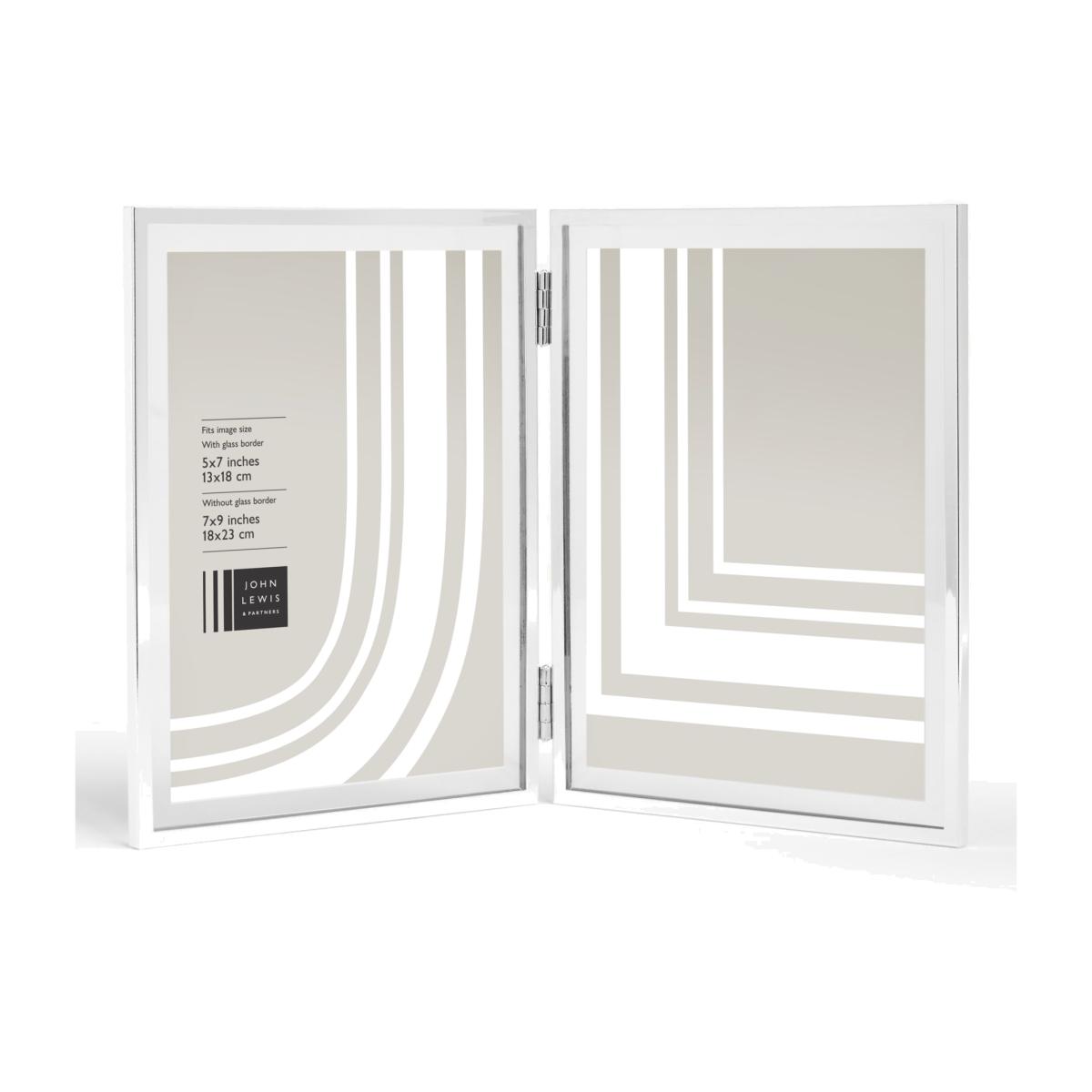 John Lewis Vertical Folding Double Photo Frame & Glass Border, 5 x 7" (13 x 18cm), Silver Plated