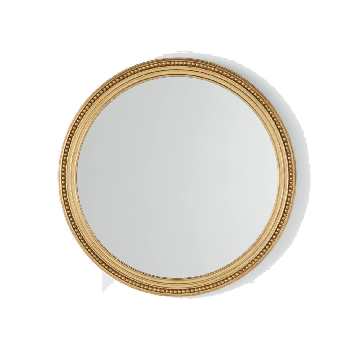 Vintage French-style round wall mirror with decorative beading on the frame and an opulent antique gold finish. Have you thought about wall hooks and fittings?