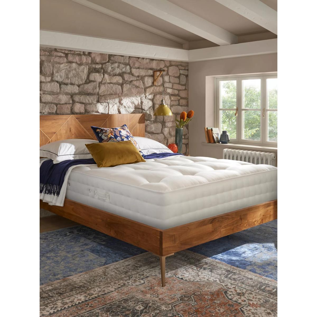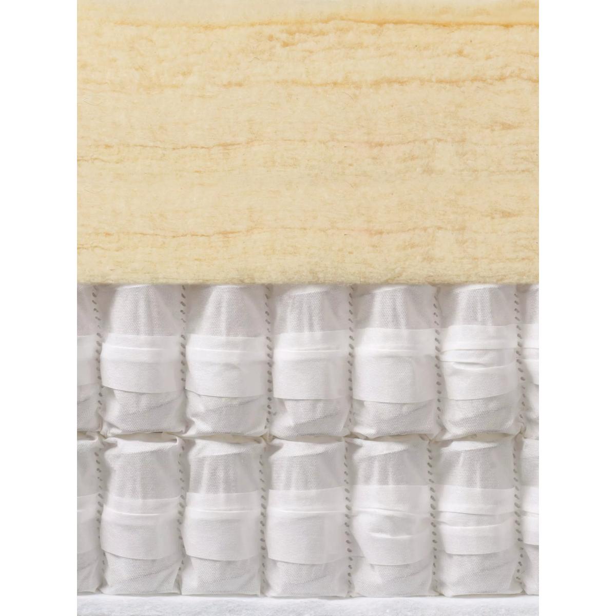 The Waitrose Wool Collection of mattresses have been carefully designed to provide classic comfort and support with active pressure relief. This range recognises all the natural benefits of British wool, such as its breathability and natural temperature regulation, and that it repels dust-allergens and is naturally biodegradable. The Waitrose Wool No. 5 is a sumptuous, easy to maintain, no-turn pocket spring mattress with 6.15kg (per king size mattress) of natural wool from award-winning Waitrose and assured farms, which naturally wicks moisture away from the body to create a comfortable sleep experience. 2000 individual pocket springs (per king size mattress) work together to respond to body movement, whilst a comfort layer of fibres made from recycled fibres, encourages breathability. Red Tractor traceable wool from Waitrose farms The British wool in these mattresses is responsibly sourced from our Waitrose farms, as well as farms assured by Red Tractor Food and Farming Standards, so we know exactly where it’s coming from. Our Partnership ensures these farmers get a fair price for the wool that they produce. Plus, fleece wool has natural temperature regulating properties, so while it feels cosy, soft and springy, it also helps to keep your sleep environment cool and fresh. Pocket spring system The pocket springs in this mattress are produced in a tightly coiled format, so they respond and react as you move throughout the night and keep your body weight evenly distributed. Providing pressure relief, they also help to maintain the structure of the mattress. Chemical free sleep surface Traditionally, some manufacturers add chemicals to mattresses in order for them to be fire retardant and compliant with regulations. In our quest to be as kind to the environment as possible, our wool mattresses are naturally fire retardant and free from traditional chemical flame retardant treatments. This mattress offers a medium feel and provides comfortable support from head-to-toe. This zip link model can be used as one large mattress or as two independent mattresses, depending on your needs. Try before you buy This is an important purchase and it’s worthwhile to try your choice of mattress in one of our shops to make sure it's right for you. Our store Partners will be able to tell you more about its benefits, and recommend options based on your needs.