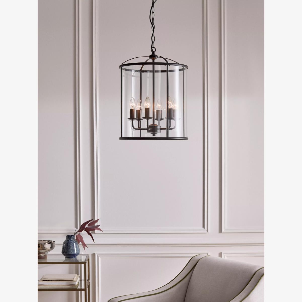 I love this six-light ceiling lantern for its sleek, modern take on traditional candle holders, making it a versatile statement piece. It works exceptionally well in contemporary and industrial interiors, providing warmth and ambience without overwhelming the space. To style, consider pairing it with warm metallic accents or minimalist decor to highlight its clean lines. It’s ideal for dining rooms, kitchens, or even a spacious entrance hall, where its multiple candles can create a soft, inviting glow. For practicality, ensure the bulbs used complement the candle-inspired aesthetic and enhance the overall mood.
