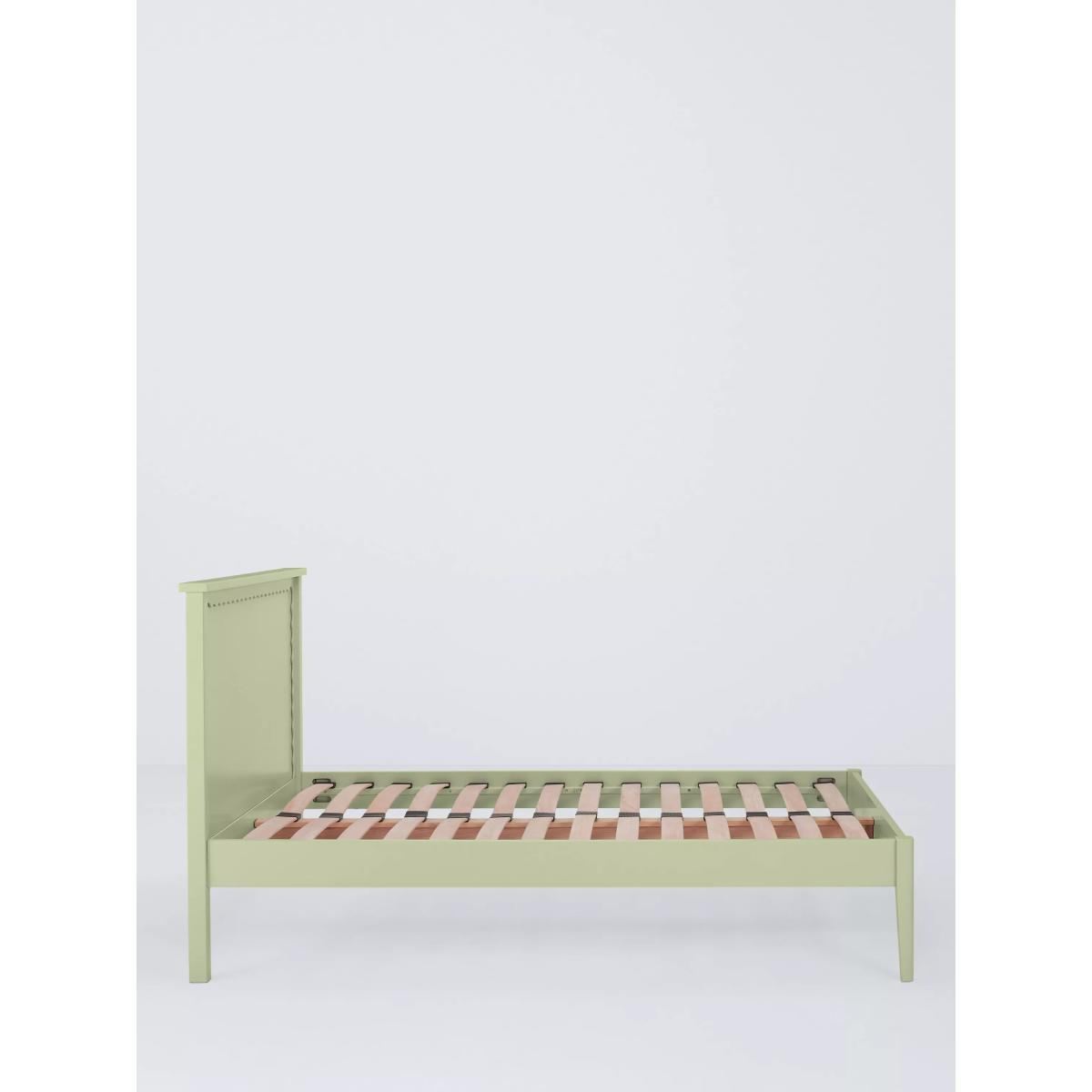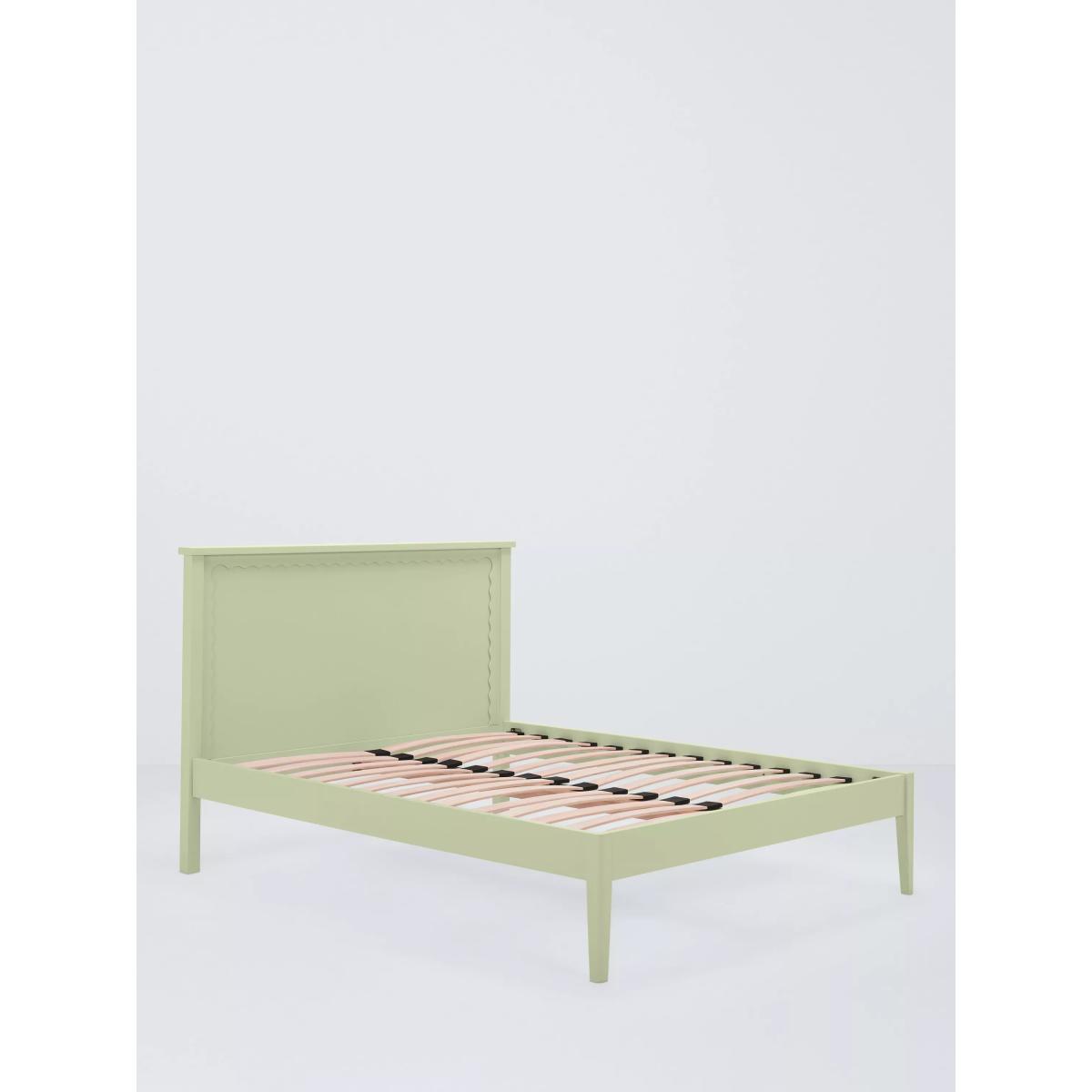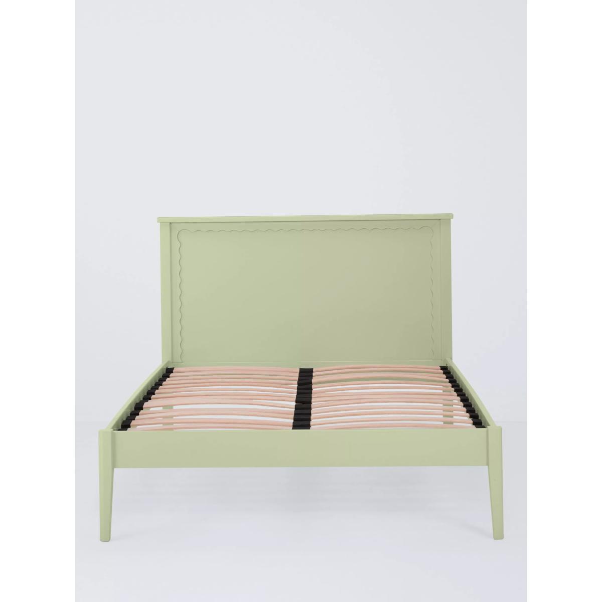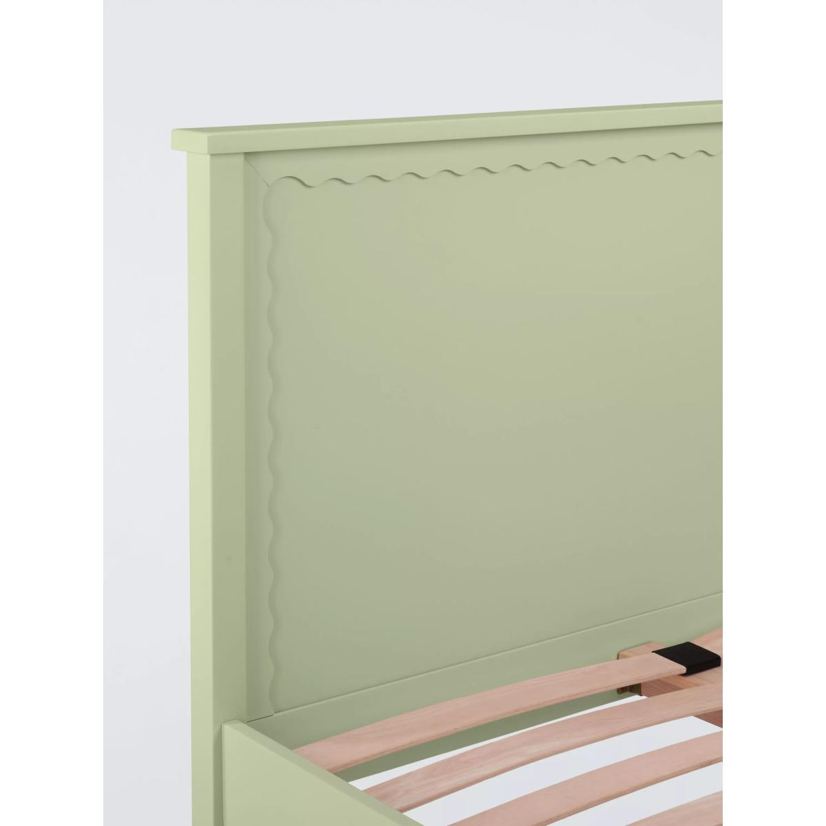 I love the Wave bed frame in green for the way its gentle curved headboard and slim legs add interest without dominating a scheme. The muted green finish works brilliantly in Scandi-inspired or modern eclectic rooms, pairing equally well with pale neutrals and bolder accent colours. For styling, keep bedding light and textured - think natural linen or cotton in cream or blush - then layer a chunky throw and a mix of cushions. Flank it with simple light-wood or rattan bedside tables, add a little greenery in woven baskets and finish with a minimalist pendant or wall-mounted lamp to keep the look clean and practical.