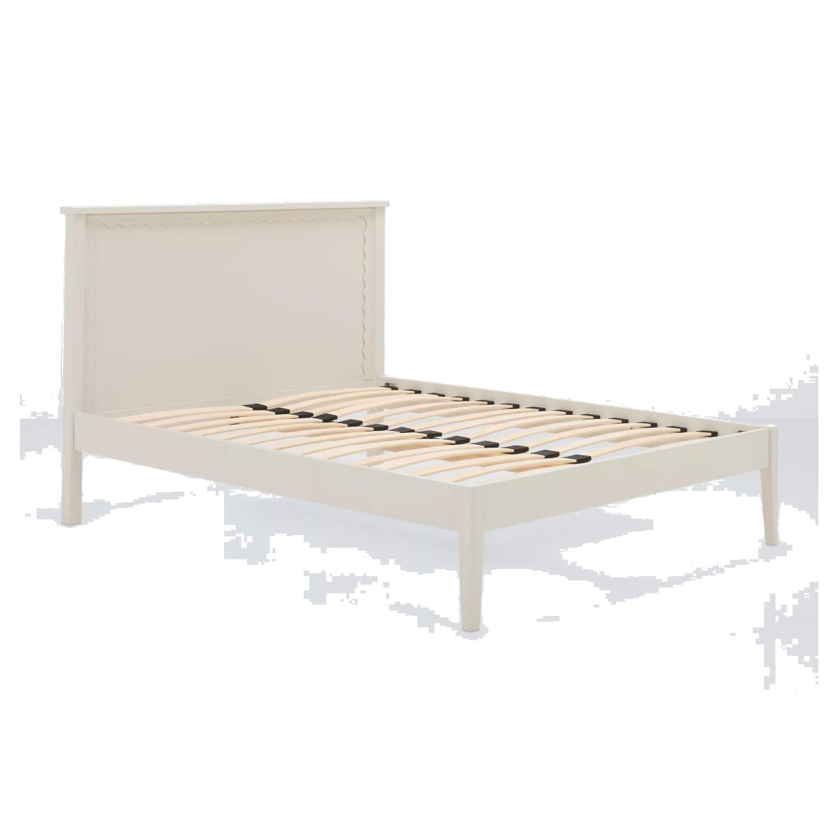 Transform your bedroom with furniture that's decorative and splashed with colour. This bed frame is part of our Wave range and accented with a sweet, scalloped inlay design. There are sprung slats in the base which provide a supportive foundation for your mattress.
