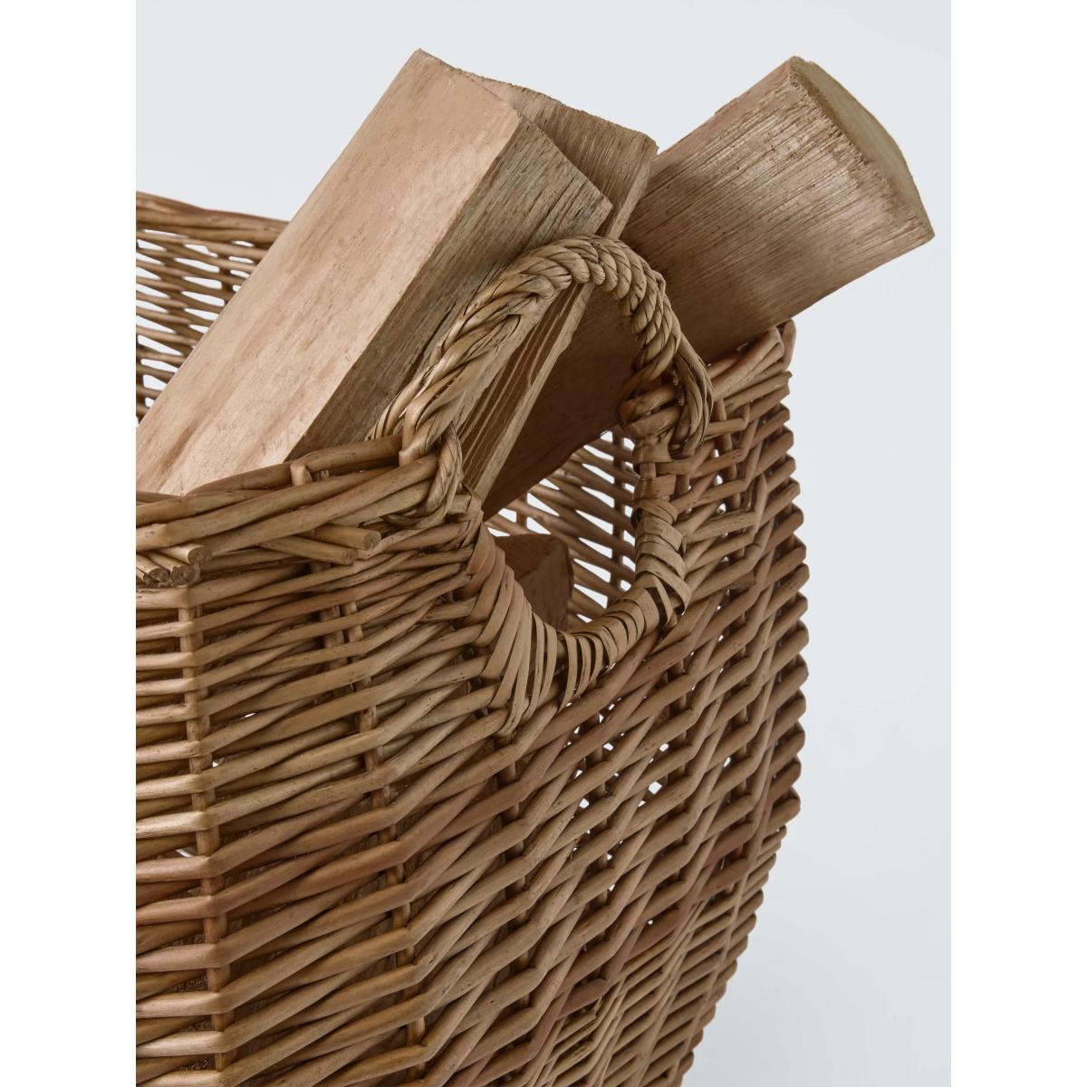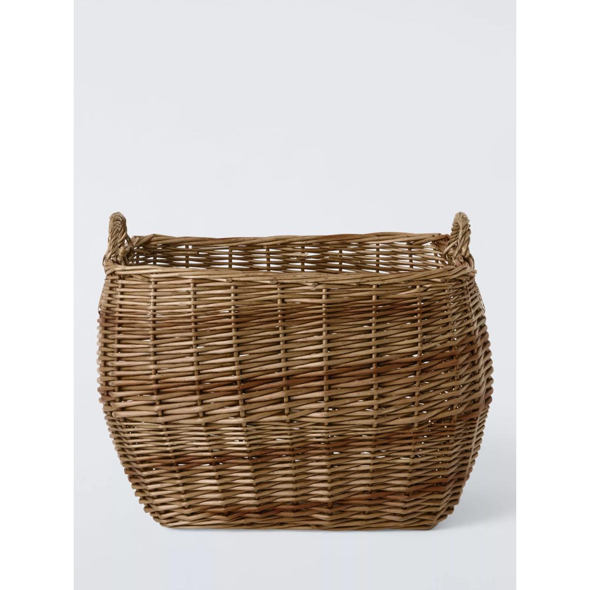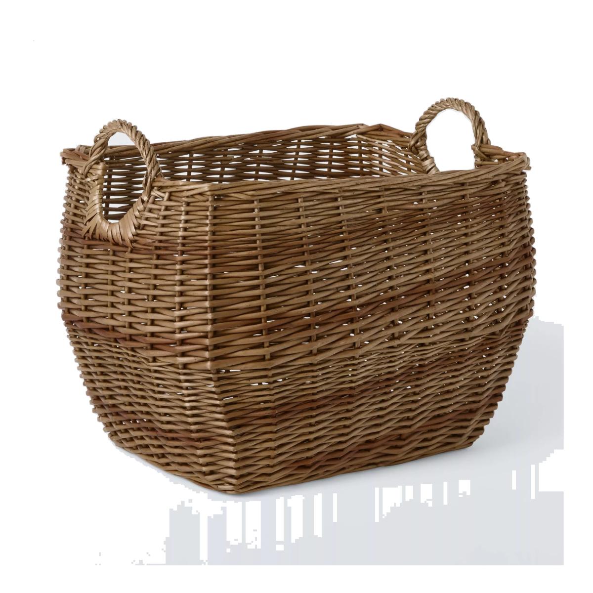 A large log basket, neatly woven fro willow and designed with large looped handles. Willow grows quickly; once cut it can grow back to the same height within a year. Artisans use these raw fibres to handcraft woven baskets.
