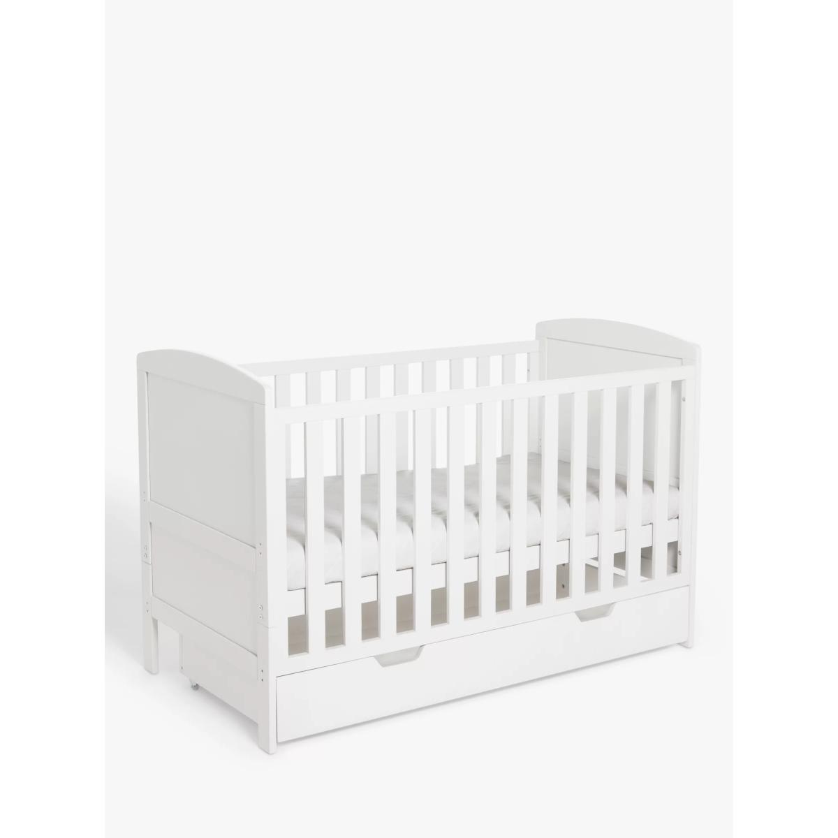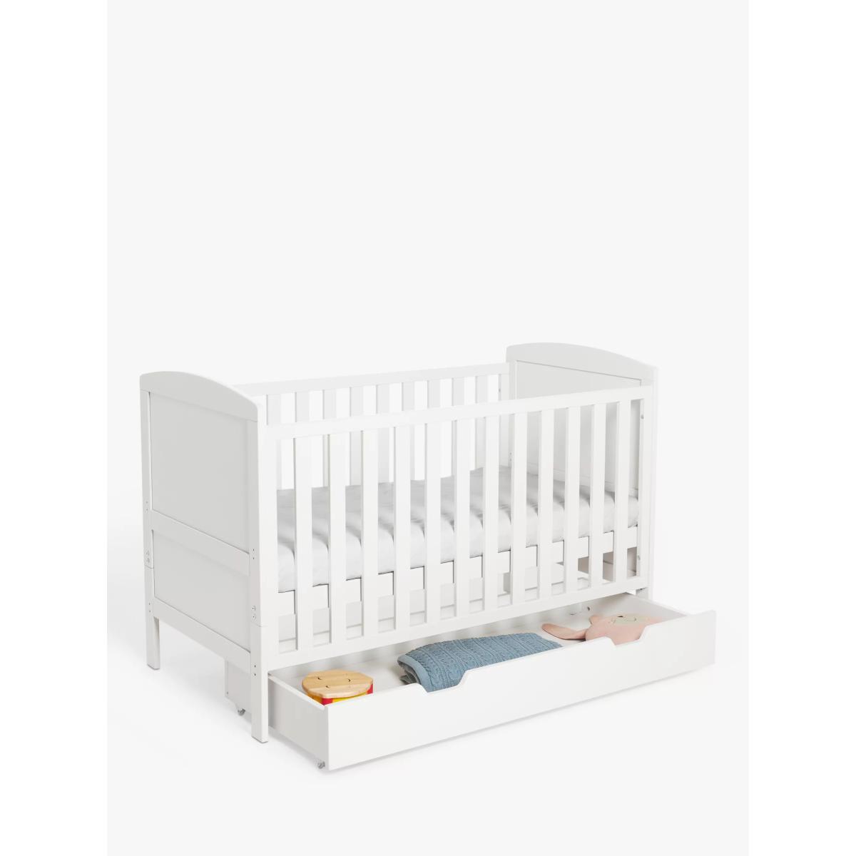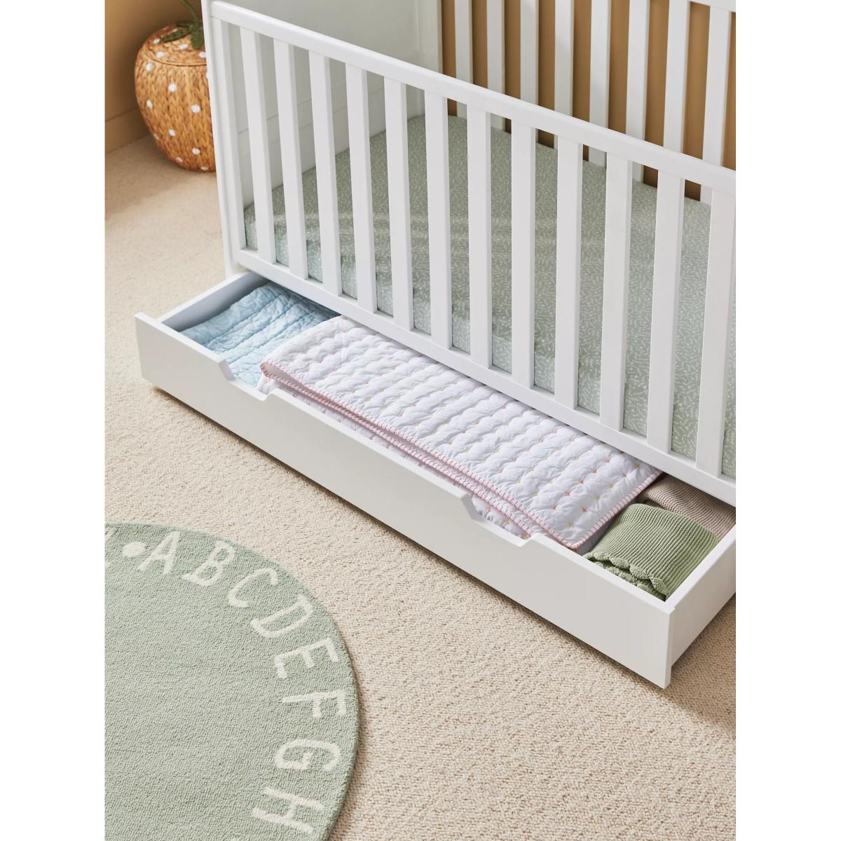 Designed to sit perfectly under our Wilton Cotbed (as a cot and as a toddler bed), this handy cotbed drawer helps you make the most of your nursery space. Running on fixed caster wheels and featuring cut-out handles, it's really easy to pull out and use.