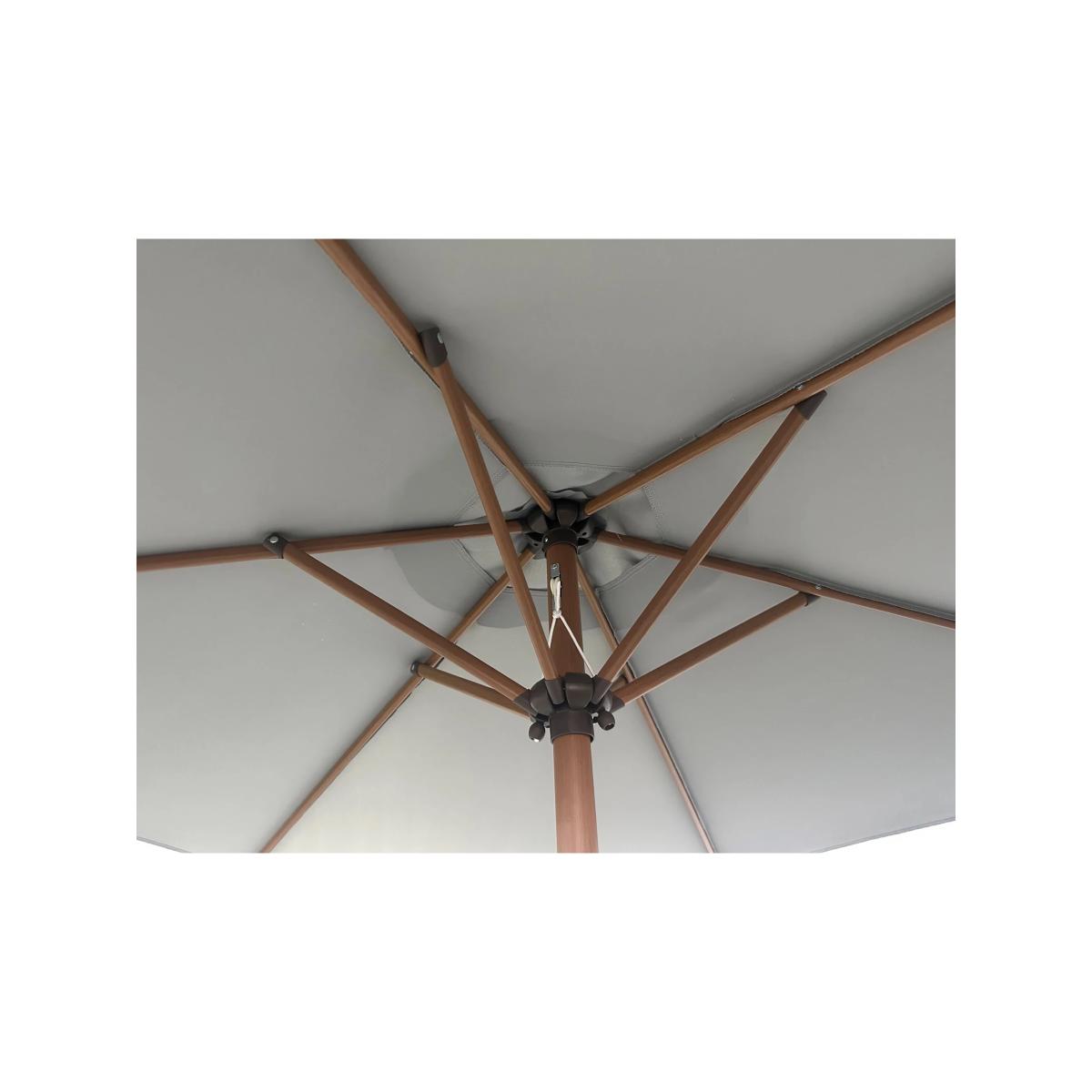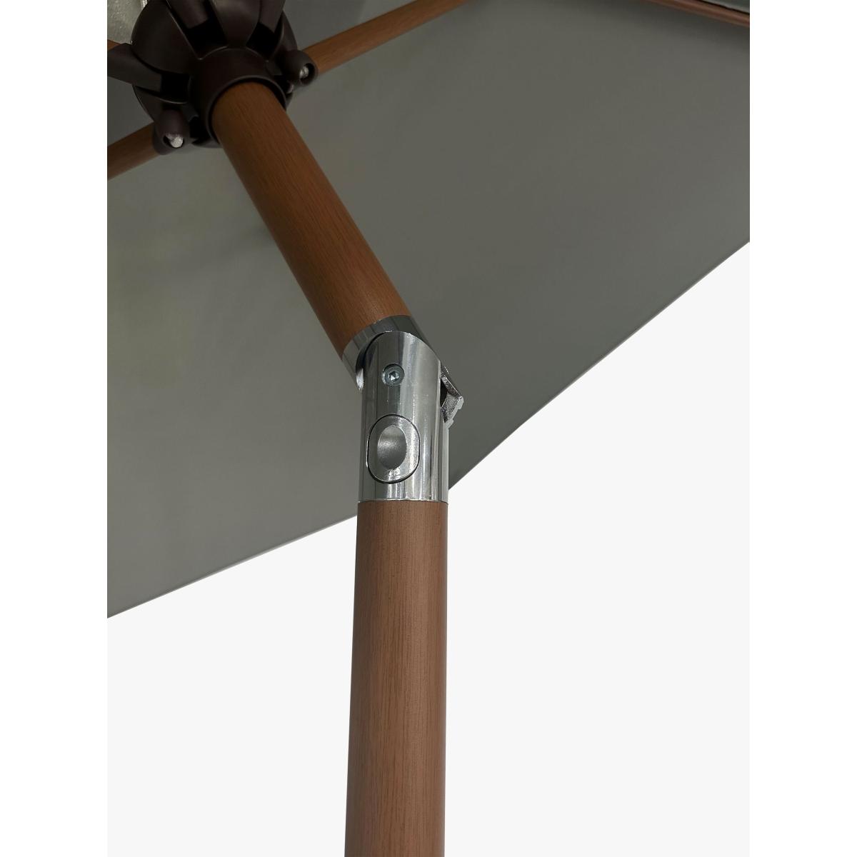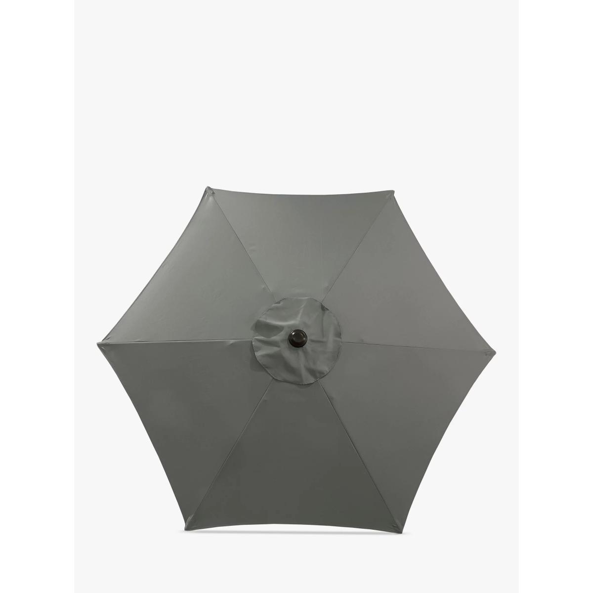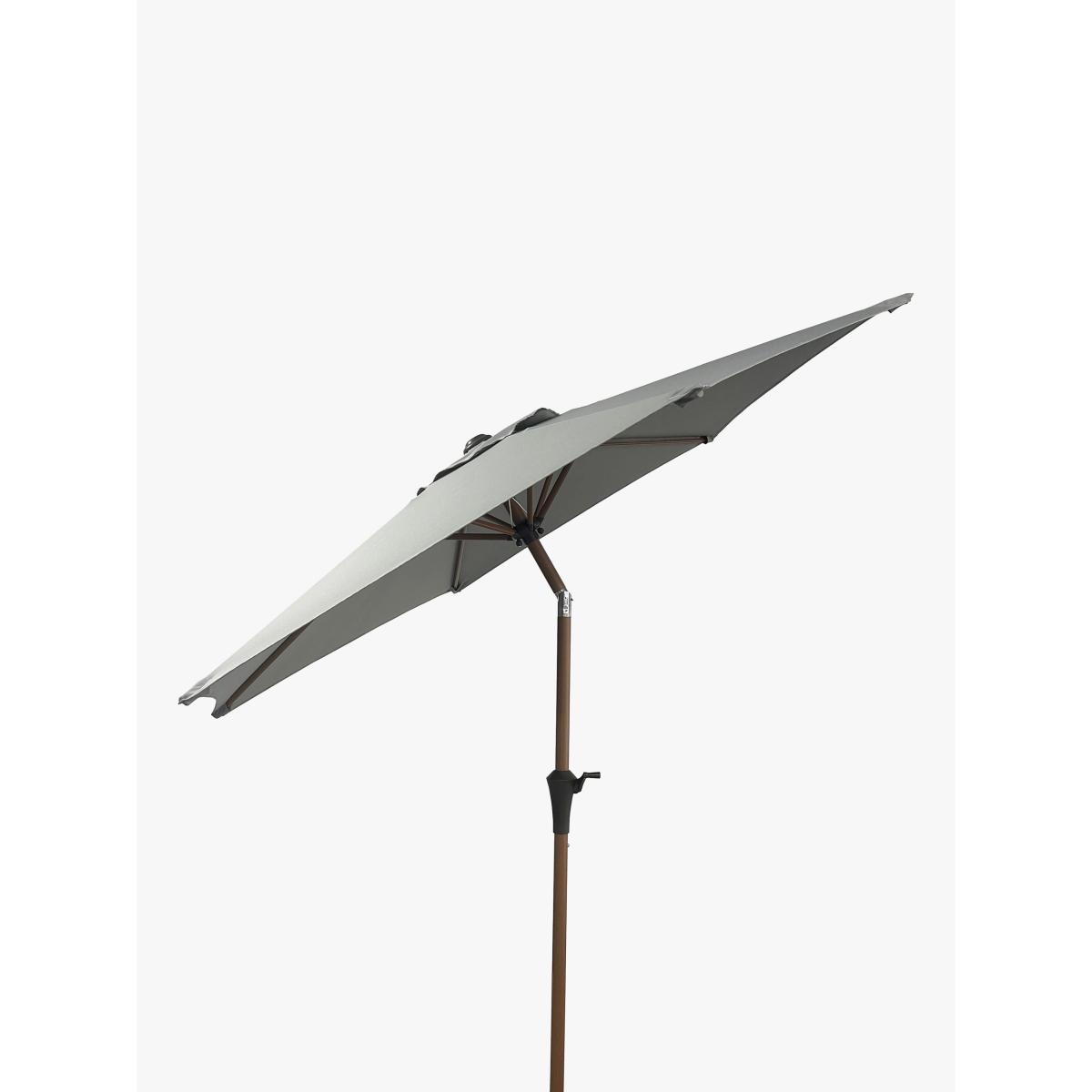 Operated by an easy wind-up mechanism, this garden parasol has tilt adjustment to give you targeted protection from the sun. It's made with a shower-resistant canopy offering UV50+ sun protection and a corrosion-resistant aluminium pole with a stylish wood-effect finish. Shock-resistant ribs complete this sturdy design. When not in use or in windy weather we recommend you close the parasol down. Other sizes are available. Key features: Wind-up mechanism UV50+ sun protection and shower-resistant canopy Tilt adjustment Sturdy, corrosion-resistant aluminium pole with wood-effect finish Shock-resistant ribs Requires a 15kg base. Choose a suitable parasol base weight.