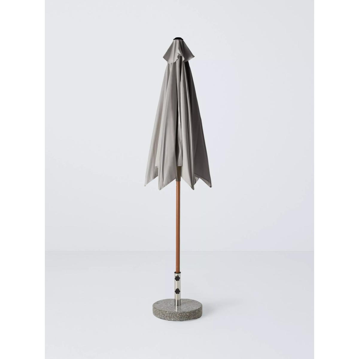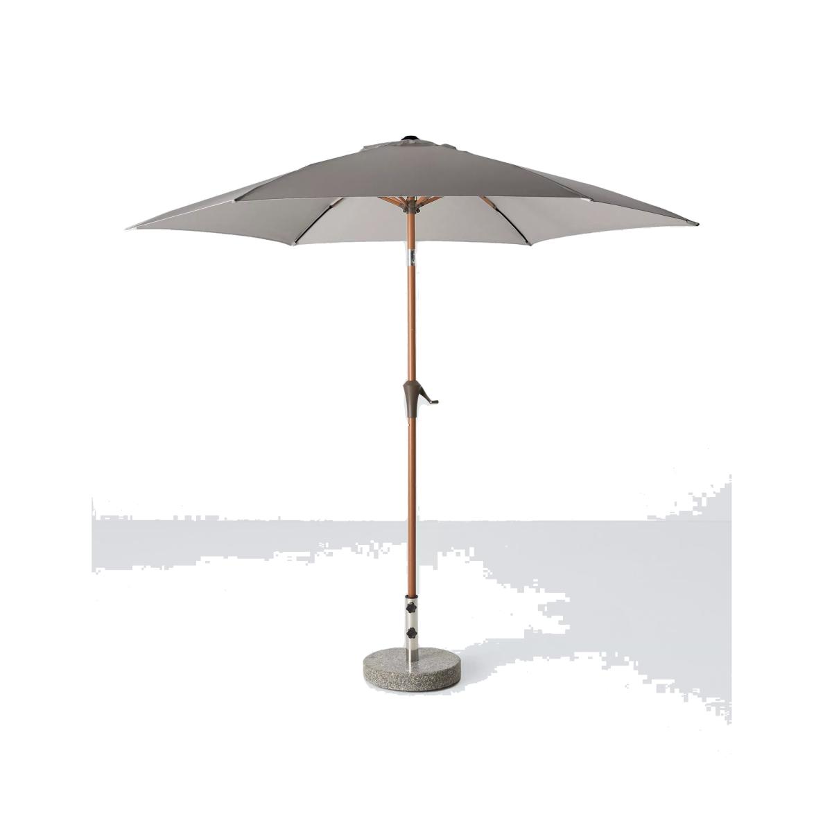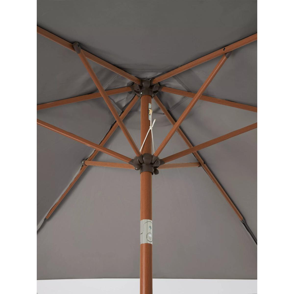 Operated by an easy wind-up mechanism, this garden parasol gives you protection from the sun. It's made with a shower-resistant canopy offering UV50+ sun protection. The lightweight, corrosion-resistant aluminium pole has a stylish wood-effect finish. Other sizes are available. Key features: Wind-up mechanism UV50+ sun protection and shower-resistant removable canopy Durable ribs Sturdy, corrosion-resistant aluminium pole with wood-effect finish Base not included. Requires a 25kg base, even when closed. Choose a suitable parasol base weight. Parasol care information When not in use or in windy weather, we recommend you close the parasol down and add a parasol cover Never drag a parasol when moving it, always lift it Periodically check all fixings to ensure none have come loose and re-tighten where necessary Do not excessively tilt or sway the canopy. Do not hang items from or swing from the canopy as this will cause tipping