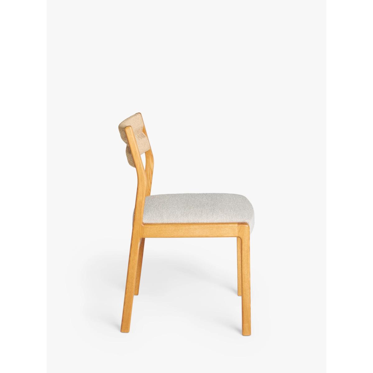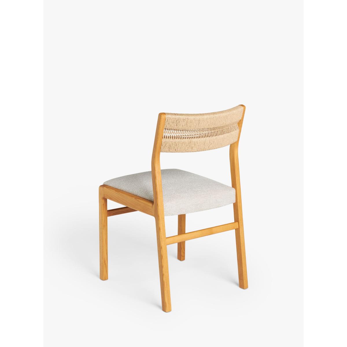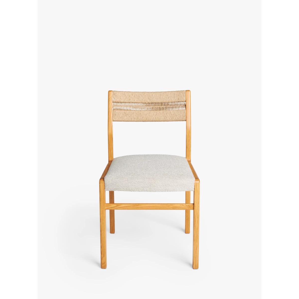 Inspired by and named after High Wycombe, the home of British furniture making, this dining chair is made from lacquered FSC ash wood which has a naturally warm and distinct colour and tactility. Celebrating British mid-century furniture design, it features retro detailing with soft edges and angled, spindle legs. This ash wood dining chair has an intricately woven rope back and is upholstered in hardwearing polyester fabric in a soft, cream shade to suit most surroundings. Want to see it first? You may want to see and get a feel for the furniture in one of our shops before ordering. We'll be able to tell you where the range you'd like to view is on display.