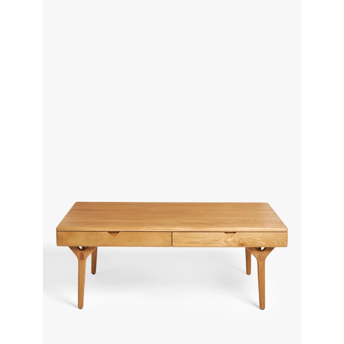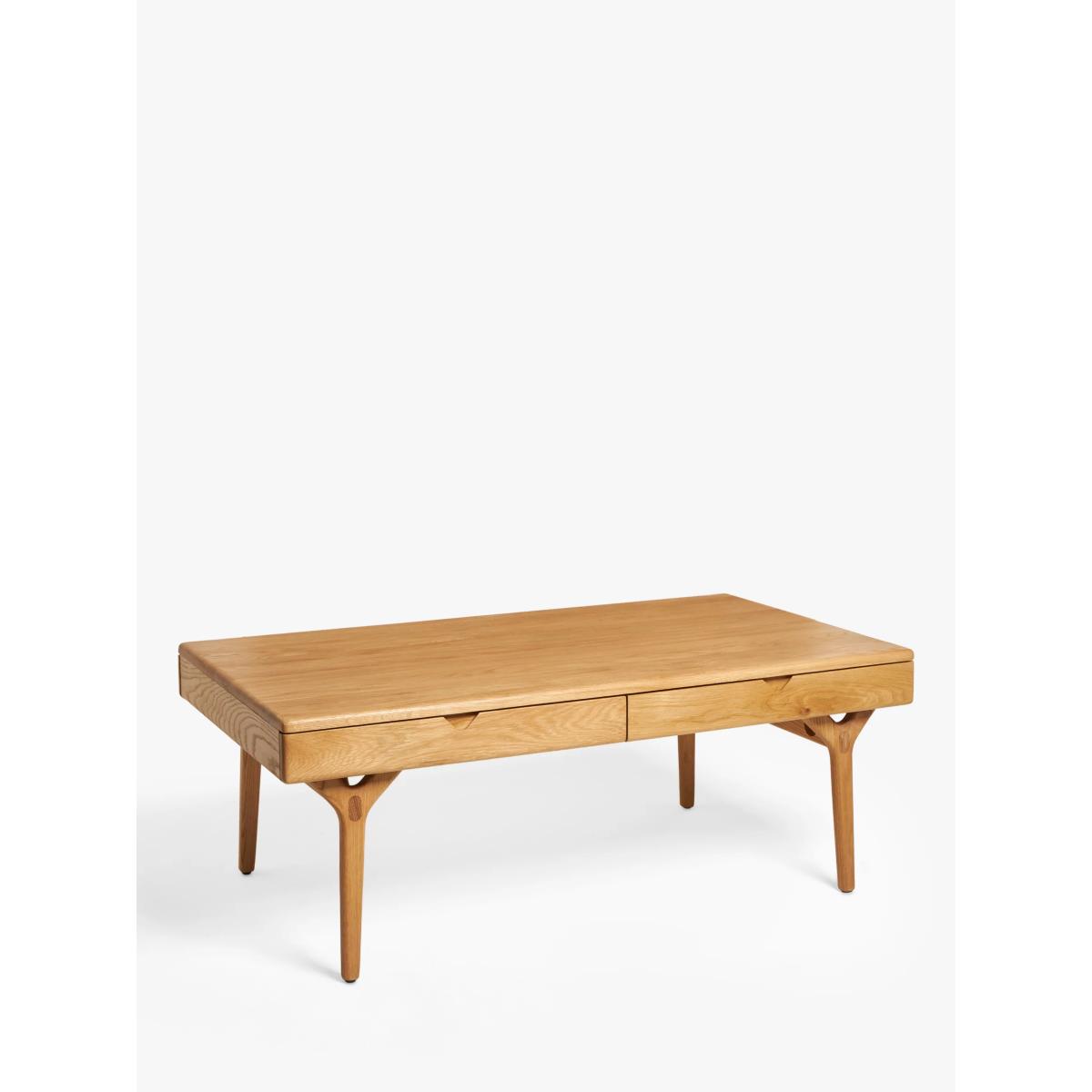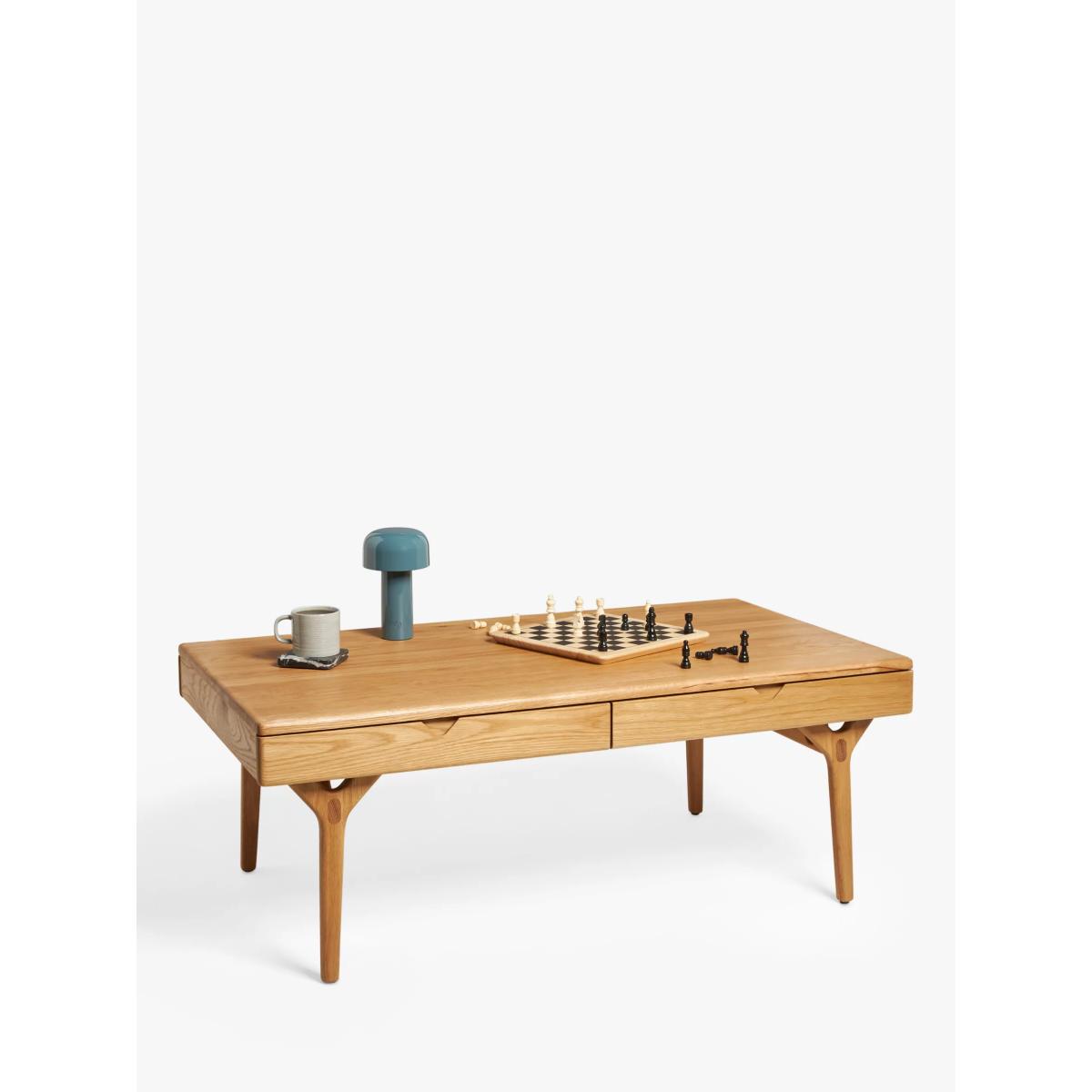 Created for us by Danish design duo Says Who, renowned for compelling details and expert woodworking, this coffee table is built for your contemporary home. Made entirely from solid oak with unique patterns and grains to show for it, this table takes its cues from Scandi-inspired design. We like the soft-edge, rounded finish of the surface top as well as the thick y-shaped legs which are built to last. Two drawers slide out to hold plenty of bits and pieces and keep the top clutter-free. Want to see it first? You may want to see and get a feel for the furniture in one of our shops before ordering. We'll be able to tell you where the range you'd like to view is on display.