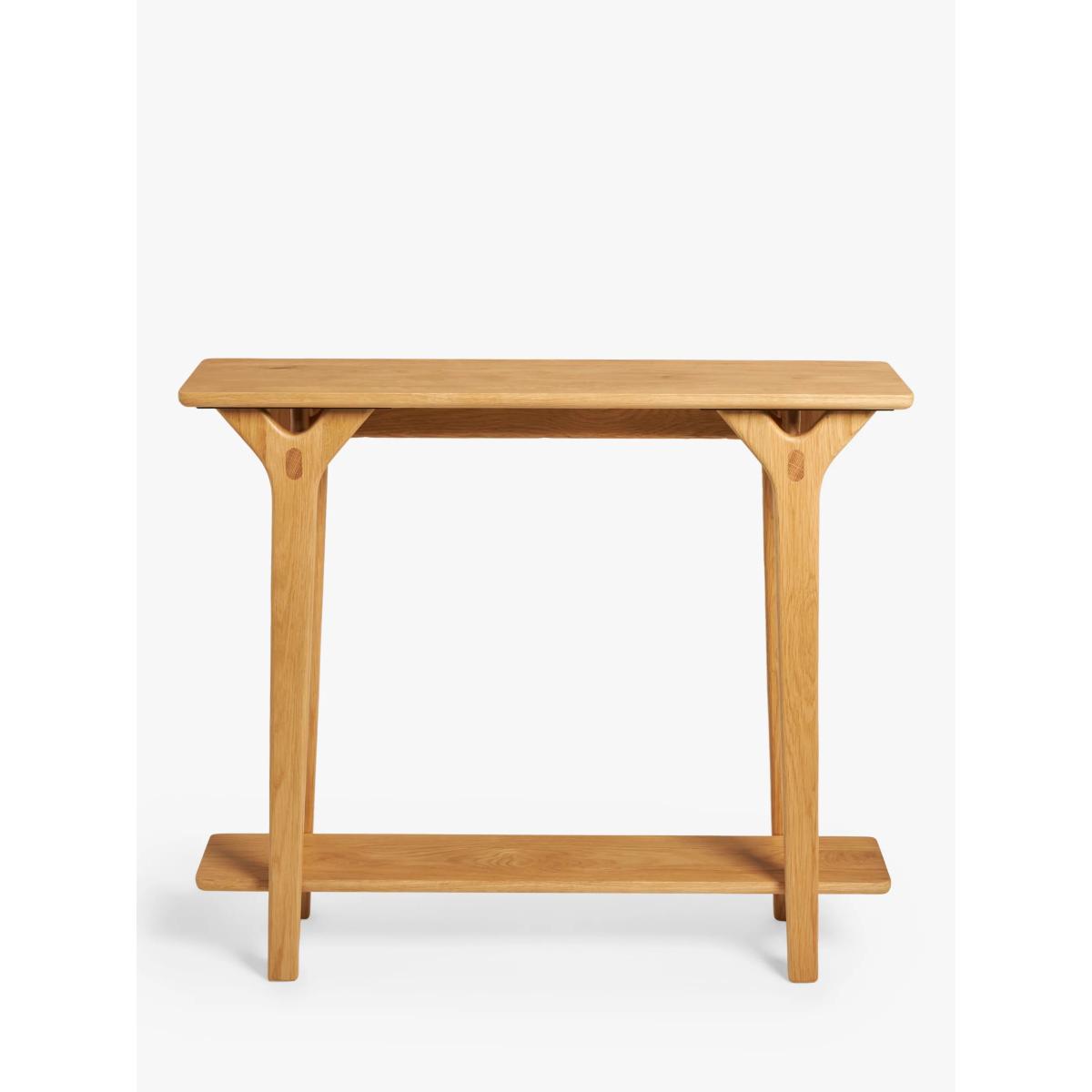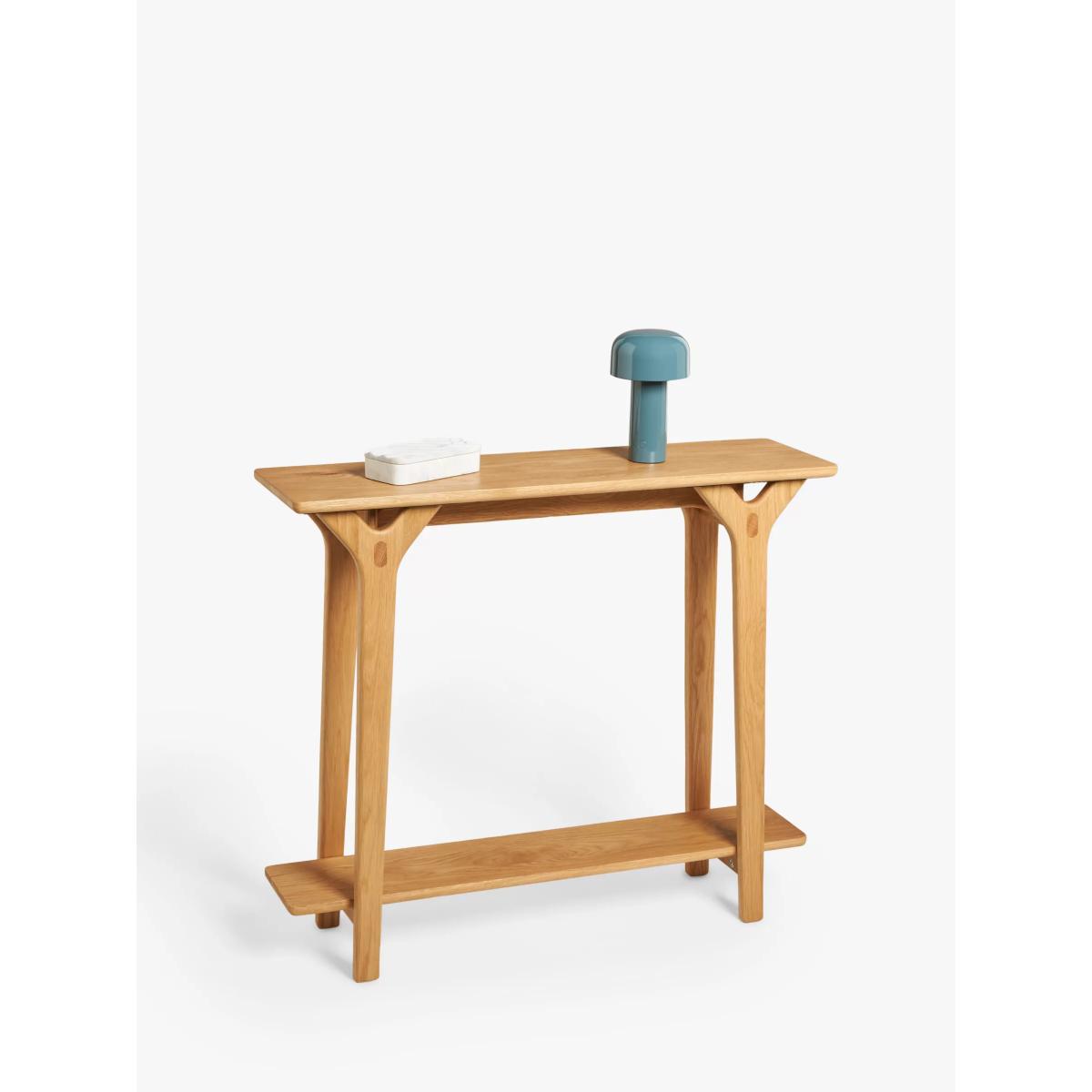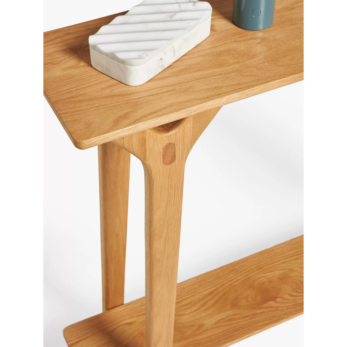 Created for us by Danish design duo Says Who, renowned for compelling details and expert woodworking, this slim console table is built for your contemporary home. Made entirely from solid oak with unique patterns and grains to show for it, this table takes its cues from Scandi-inspired design. We like the soft-edge, rounded finish of the surface top as well as the thick y-shaped legs which are built to last. Want to see it first? You may want to see and get a feel for the furniture in one of our shops before ordering. We'll be able to tell you where the range you'd like to view is on display.