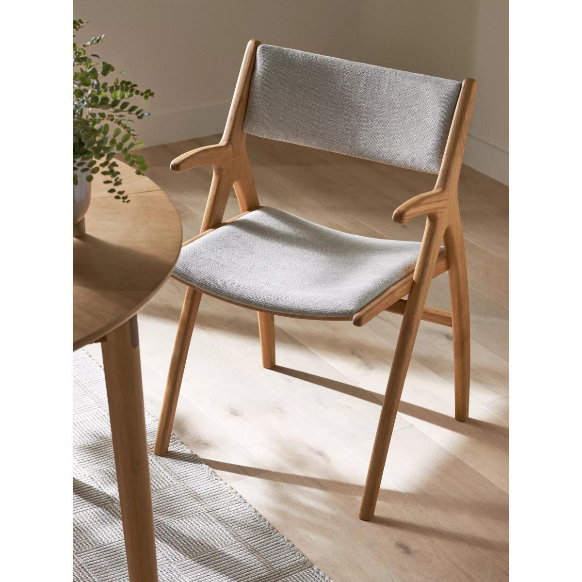 Meet our X-Ray chair. Created for us by Danish design duo Says Who, renowned for compelling details and expert woodworking. Minimalism meets sculptural form: taking cues from Scandi-inspired design, its sleek frame is carved from solid and veneered oak with rounded edges and a subtle curve in the seat. We've added hardwearing woven polyester upholstery for comfort. When today's world places emphasis on flexible living, this chair really comes into its own. It's so versatile that you can style it around the house, from dining room to living room. Take your pick. Want to see it first? You may want to see and get a feel for the furniture in one of our shops before ordering. We'll be able to tell you where the range you'd like to view is on display.