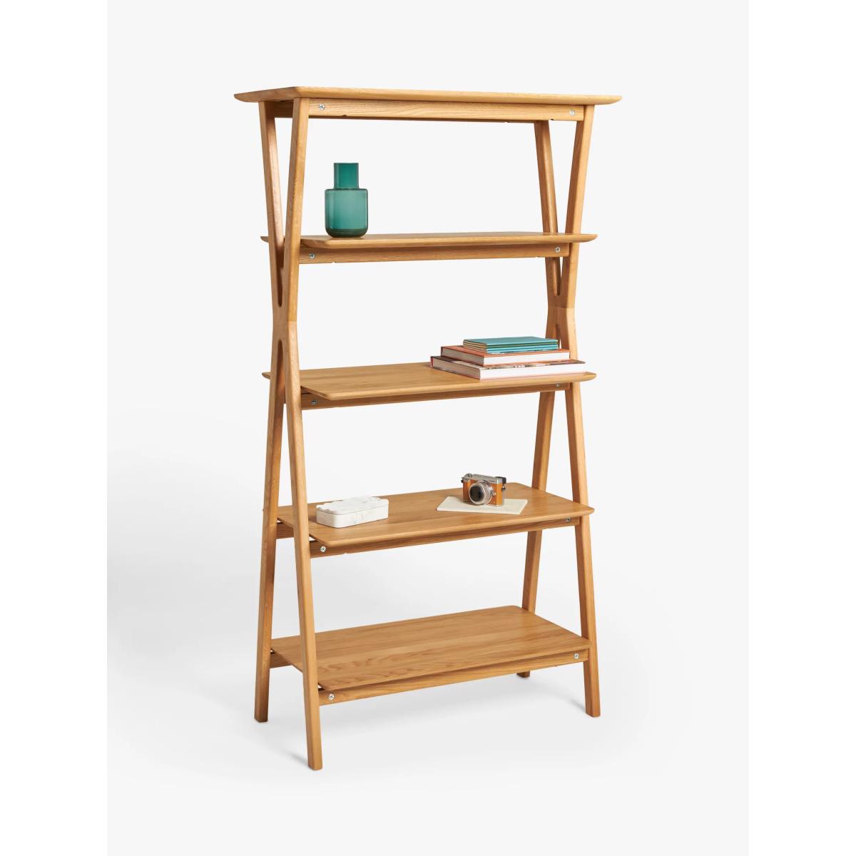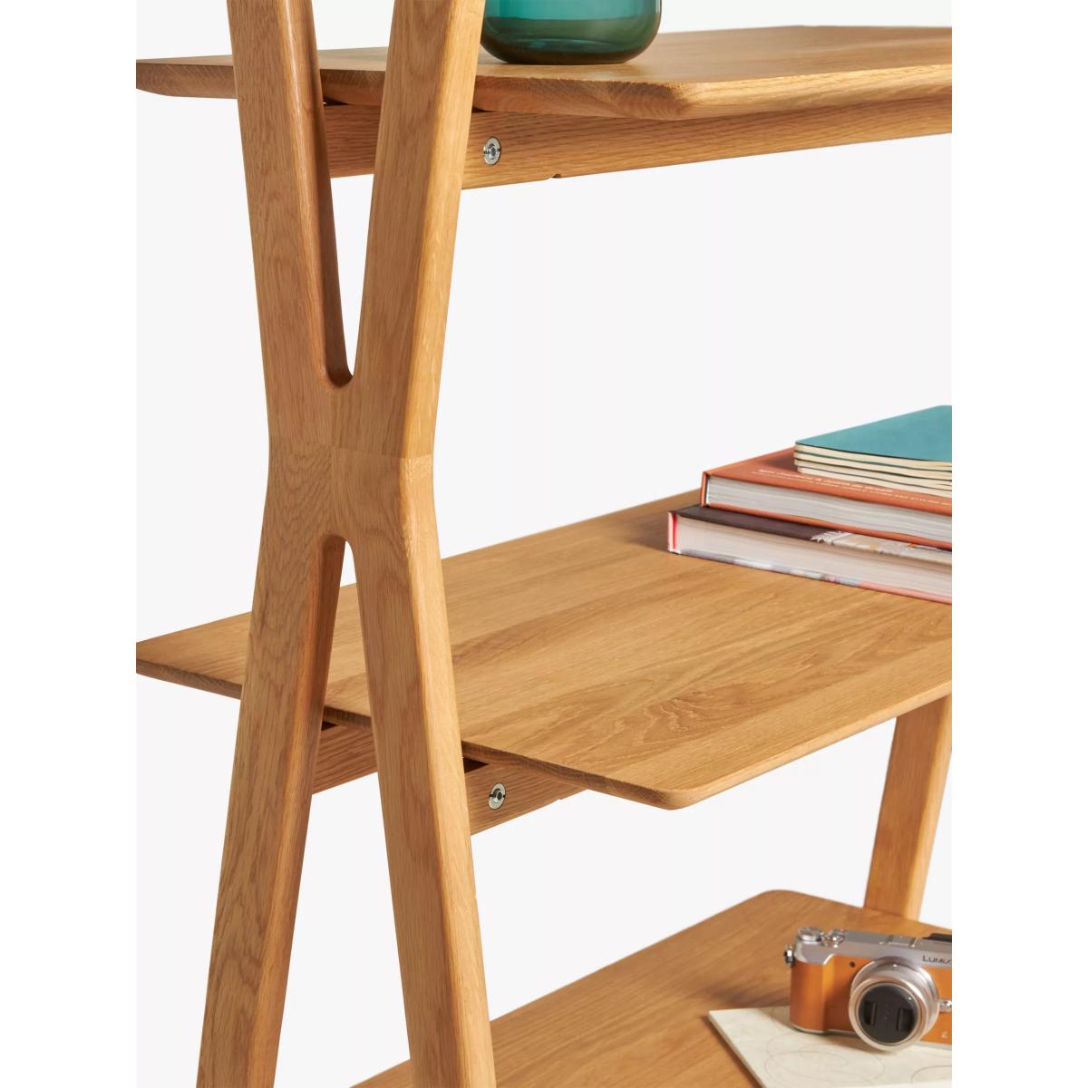 Created for us by Danish design duo Says Who, renowned for compelling details and expert woodworking, this shelving unit is built for your contemporary home. Made entirely from solid oak with unique patterns and grains to show for it, the unit takes its cues from Scandi-inspired design. We like the soft-edge, rounded finish of the shelves as well as the sturdy X-shaped frame which is built to last. Use either as a set of bookshelves or to display your favourite treasures - the choice is yours. Want to see it first? You may want to see and get a feel for the furniture in one of our shops before ordering. We'll be able to tell you where the range you'd like to view is on display.