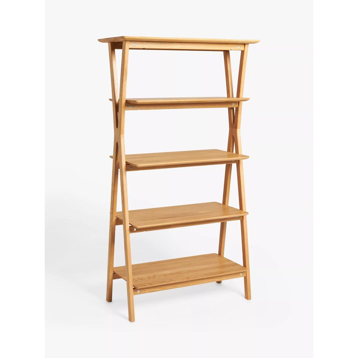 Created for us by Danish design duo Says Who, renowned for compelling details and expert woodworking, this shelving unit is built for your contemporary home. Made entirely from solid oak with unique patterns and grains to show for it, the unit takes its cues from Scandi-inspired design. We like the soft-edge, rounded finish of the shelves as well as the sturdy X-shaped frame which is built to last. Use either as a set of bookshelves or to display your favourite treasures - the choice is yours. Want to see it first? You may want to see and get a feel for the furniture in one of our shops before ordering. We'll be able to tell you where the range you'd like to view is on display.