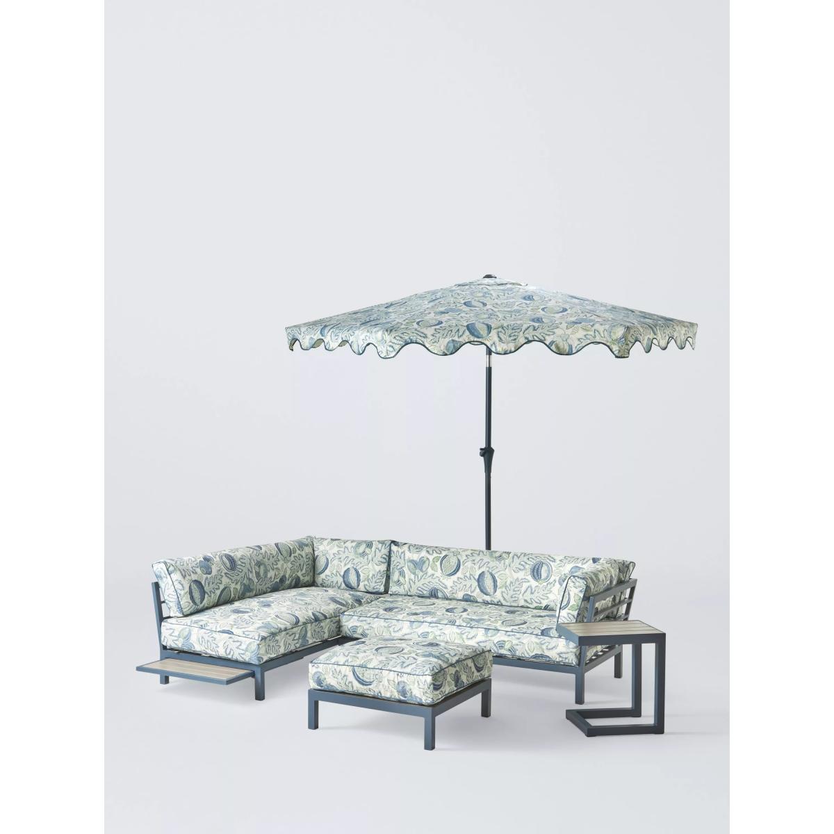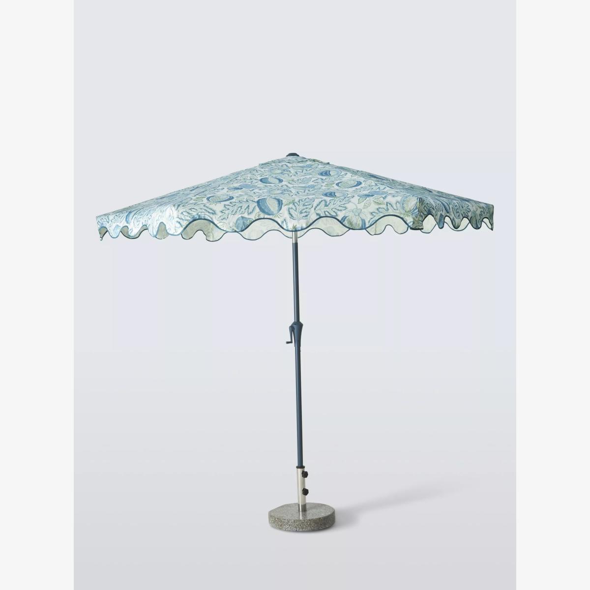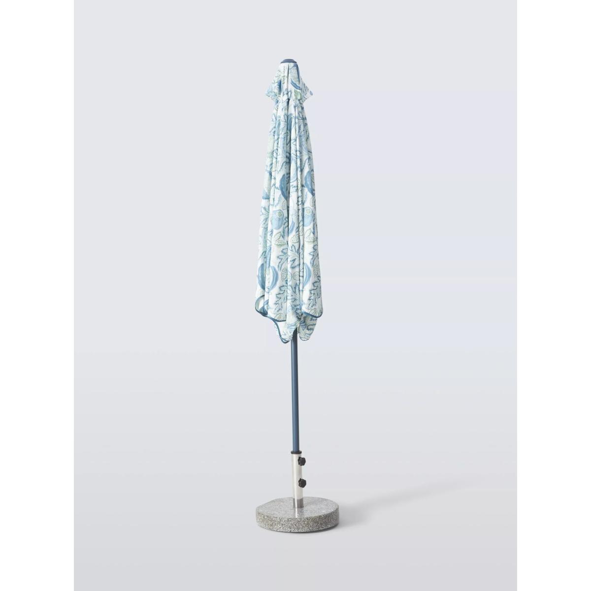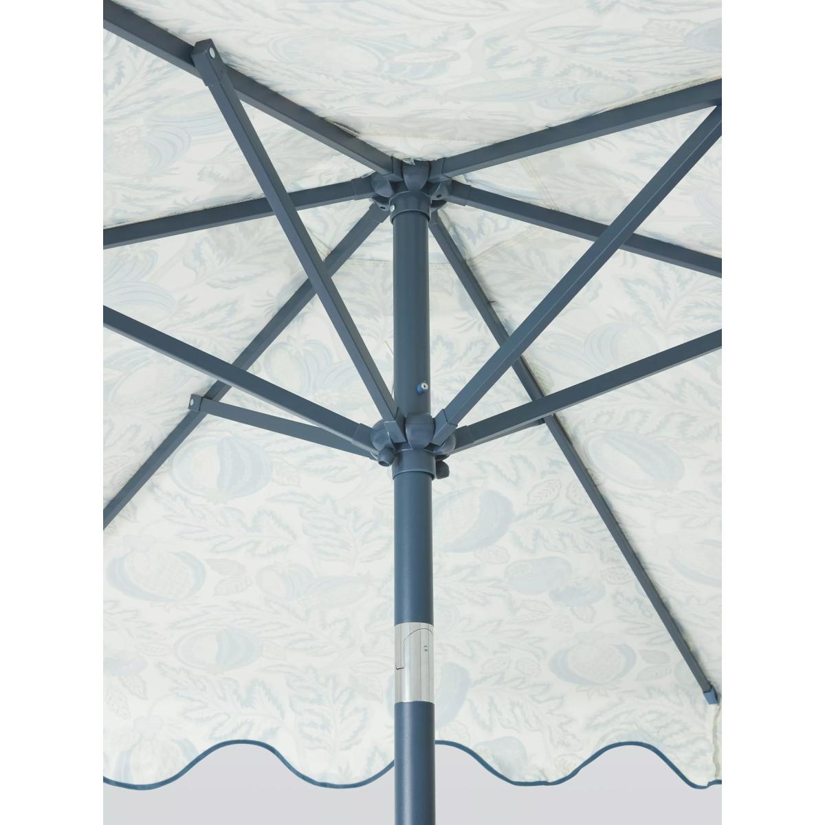 Operated by an easy wind-up mechanism, this garden parasol gives you UV50+ protection from the sun. It's made with a shower-resistant canopy in the Cantaloupe botanical print, teamed with a lightweight, corrosion-resistant aluminium pole. A beautiful heritage print from the Sanderson archive, Cantaloupe is an elegant, large-scale painterly design of oversized fruits and leaves. Key features: Wind-up mechanism UV50+ sun protection and shower-resistant removable canopy in Cantaloupe print Durable ribs Sturdy, corrosion-resistant aluminium pole Base not included. Requires a 25kg base, even when closed. Choose a suitable parasol base weight. Parasol care information When not in use or in windy weather, we recommend you close the parasol down and add a parasol cover Never drag a parasol when moving it, always lift it Periodically check all fixings to ensure none have come loose and re-tighten where necessary Do not excessively tilt or sway the canopy. Do not hang items from or swing from the canopy as this will cause tipping John Lewis x Sanderson In partnership with Sanderson, the home of iconic florals and illustrative botanicals. Celebrating a shared love of heritage prints and timeless British design.