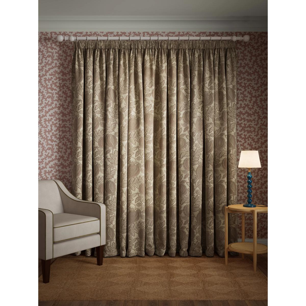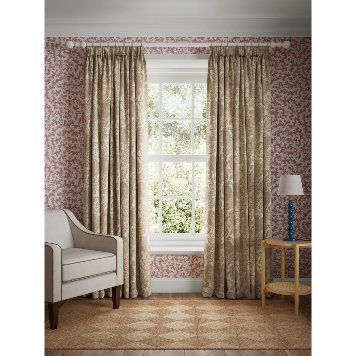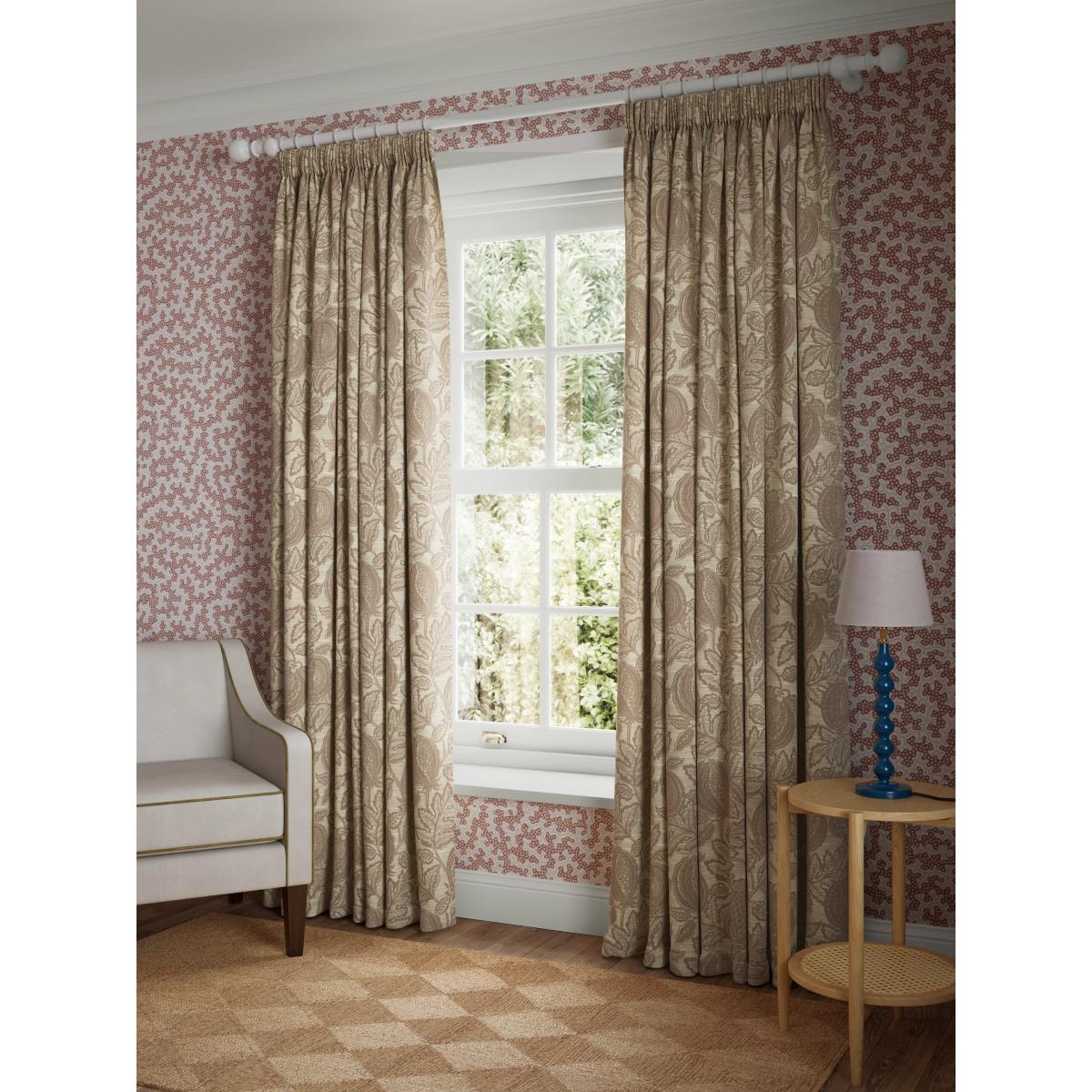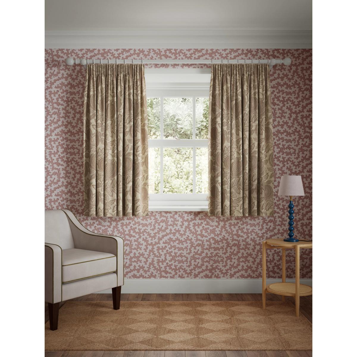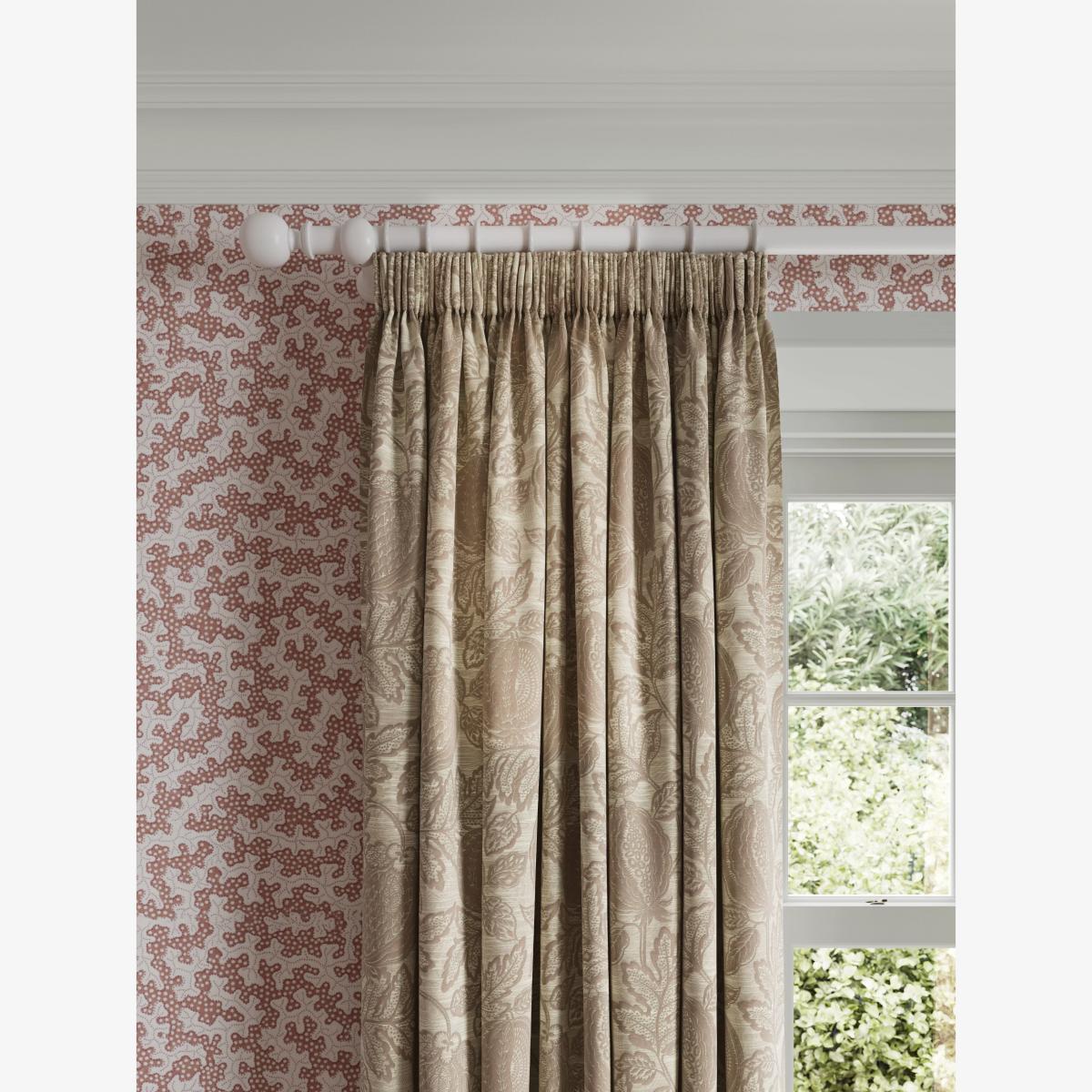 Transform your space with the charming elegance of the Cantaloupe Pencil Pleat Curtains. Crafted from luxurious jacquard fabric, these curtains feature an enchanting design of exotic fruit and leaves. Perfect for adding a touch of warmth and sophistication to any room, the subtle tones create a serene ambiance. Designed with a classic pencil pleat, these curtains offer a timeless aesthetic and effortless versatility to complement a range of interior styles. Choosing the right size These curtains can be hung with a pole or track using curtain hooks (not included). There are three hook positions on the heading, allowing you to choose how your curtains sit against the track or pole. For example, if you're using a track you may want to use the middle or lower row of hooks to cover the track, whereas if you're using a pole you may want to use the top row of hooks so the curtains hang below the rings. The specified drop is taken from the top row of hook pockets to the bottom edge of the curtain. The width stated indicates the size of one curtain panel when laid completely flat. This pack contains two panels, and the track/pole length we've recommended allows for the two panels to be gathered when the curtains are drawn. For a fuller look, increase the curtain width. One pair of 167cm width curtains will fit a curtain track/pole size of 133-167cm One pair of 228cm width curtains will fit a curtain track/pole size of 182-228cm John Lewis x Sanderson In partnership with Sanderson, the home of iconic florals and illustrative botanicals. Celebrating a shared love of heritage prints and timeless British design. Worth knowing... We package our curtains in recycled materials to keep them protected whilst they make their way to you. When they arrive they may be creased. We recommend you follow the ironing instructions on the back of the packaging prior to hanging your curtains. Be aware that each style of curtain has different ironing instructions, including heat limitations according to the fabric, so do make sure you follow the guidance provided to get the best results. Do you need a curtain pole and accessories? Shop them here.