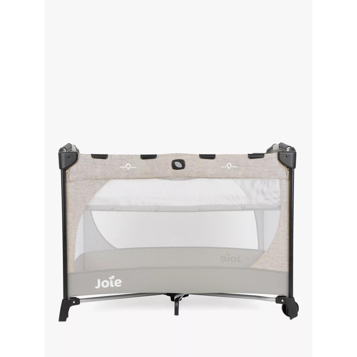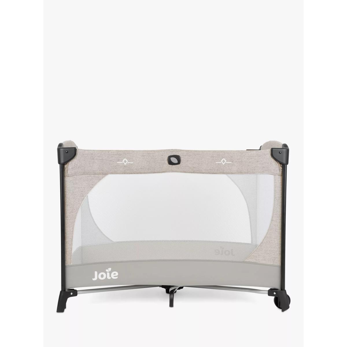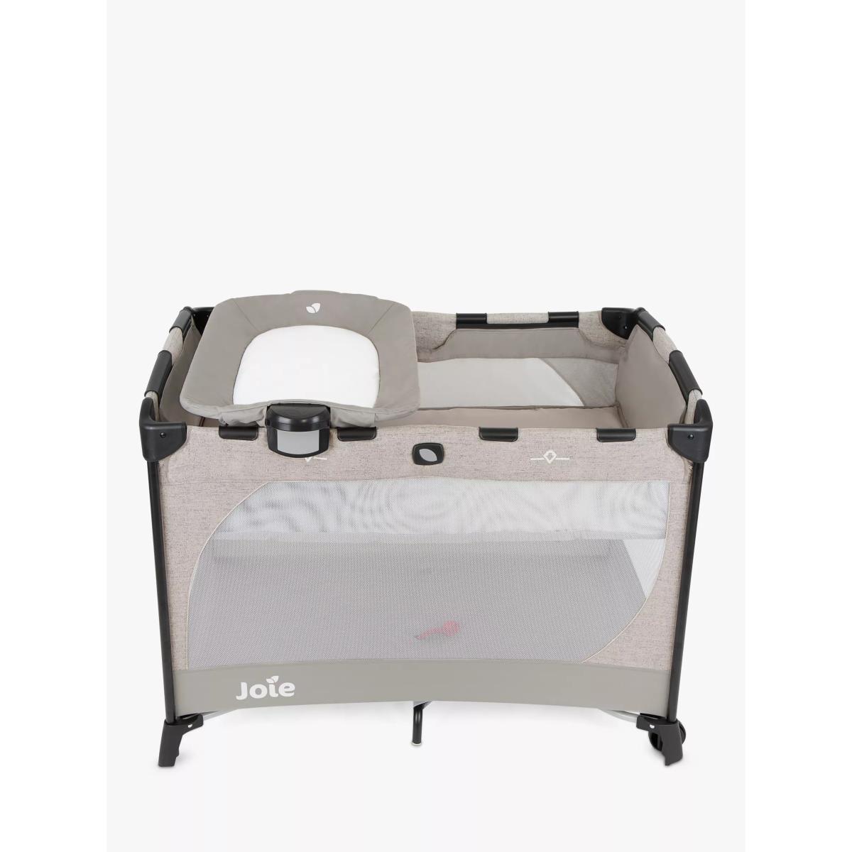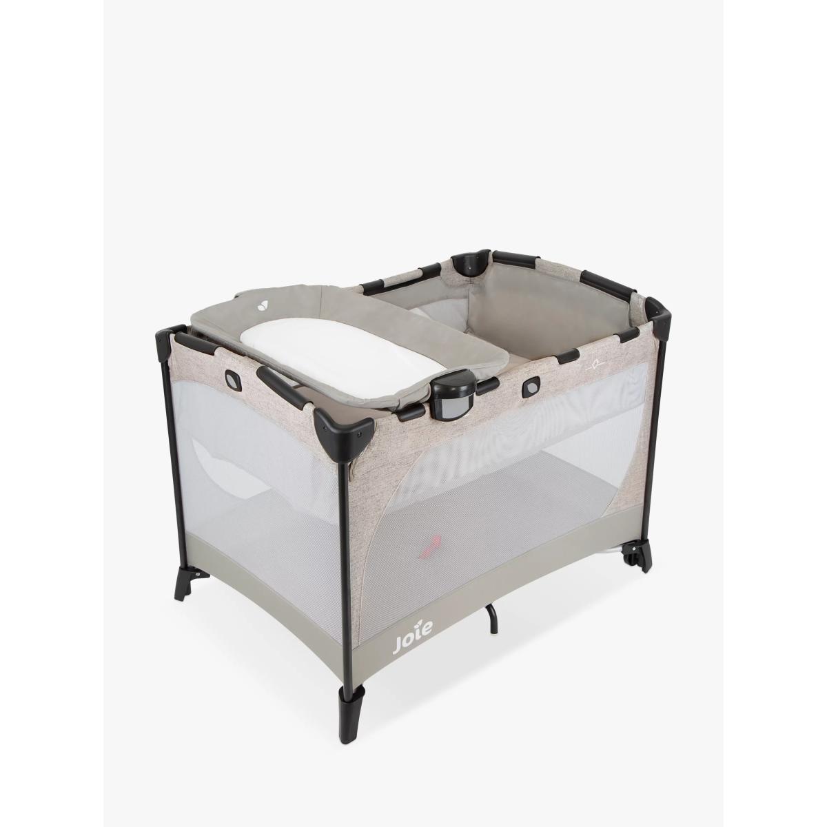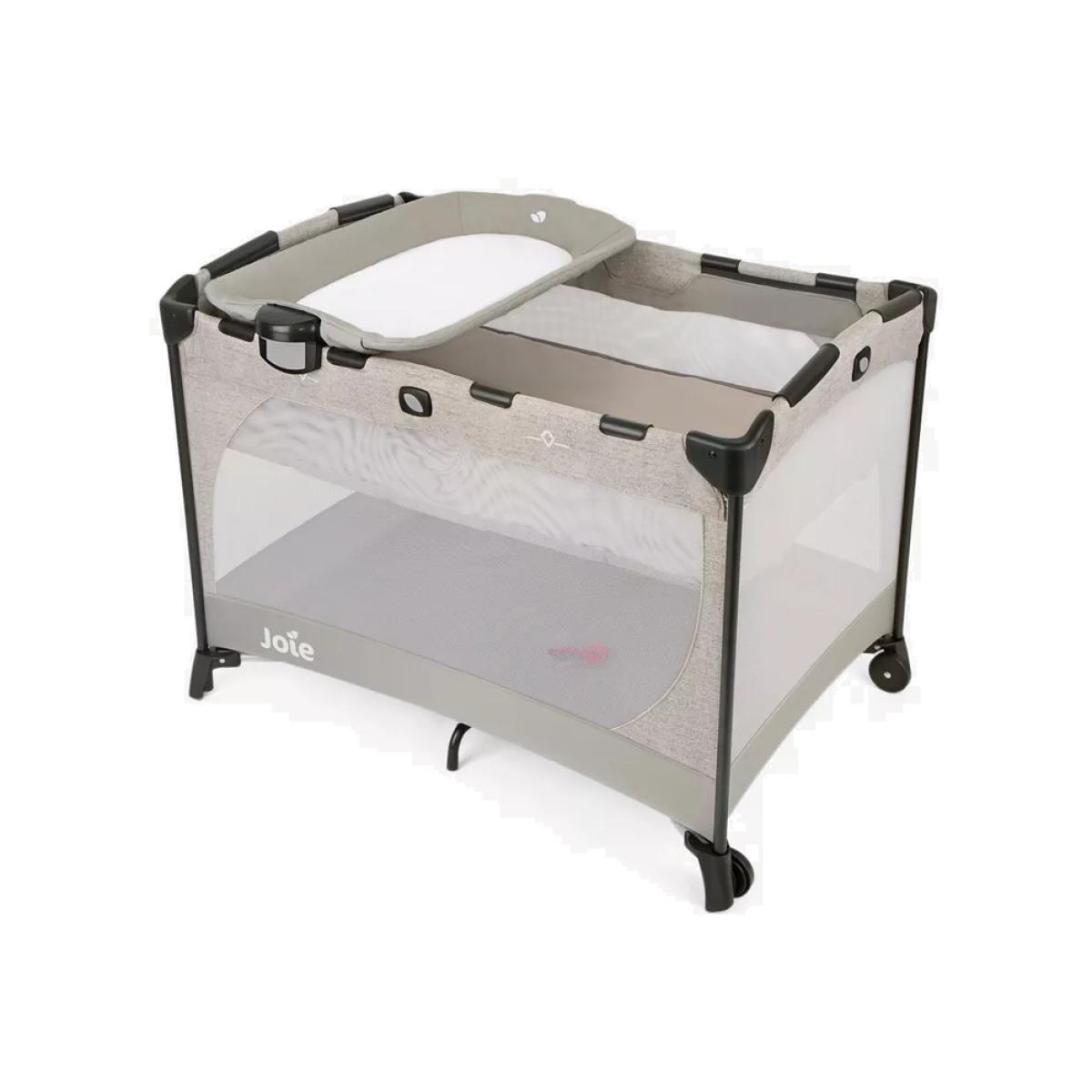 Meet commuter™ change, a tiny tourist travel cot with a quick-release changer. Designed to keep baby playing or sleeping securely, whether at home or while travelling. Just a click away - Ready to travel in an instant with a changer that pops off with one quick click. Carefree carry along - Quick and easy to set up and fold down in seconds, and packs away in the included carry bag. Above and beyond - Packed with essentials and extras including a full-size removable bassinet, integrated wheels, and Secure. Click™ changing unit. Key Features: Ultra secure frame with modern exposed tubing Full-size bassinet included for naptime options Bassinet clips quickly snap on and off 2 integrated wheels to easily move from room to room Mesh lined for ventilation on all four sides Elevated, draught-resistant base Simple, push button fold to pack up in a snap Compact, folded package for simple storage in even the smallest spaces Carry bag included for travel Changing unit easily clicks on and off using Joie's Secure. Click™ system