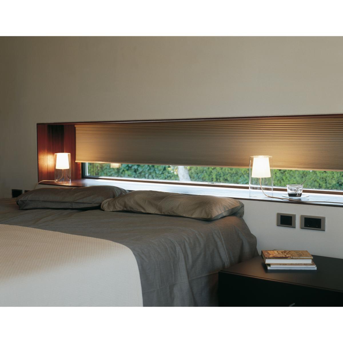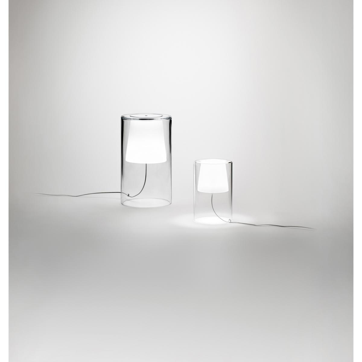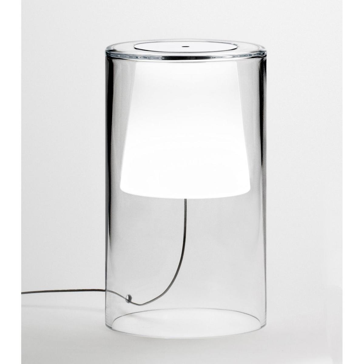 Purity and transparency for this lamp made from a single piece of blown glass. Under its transparent glass, the white lampshade is like hanging in the air!.