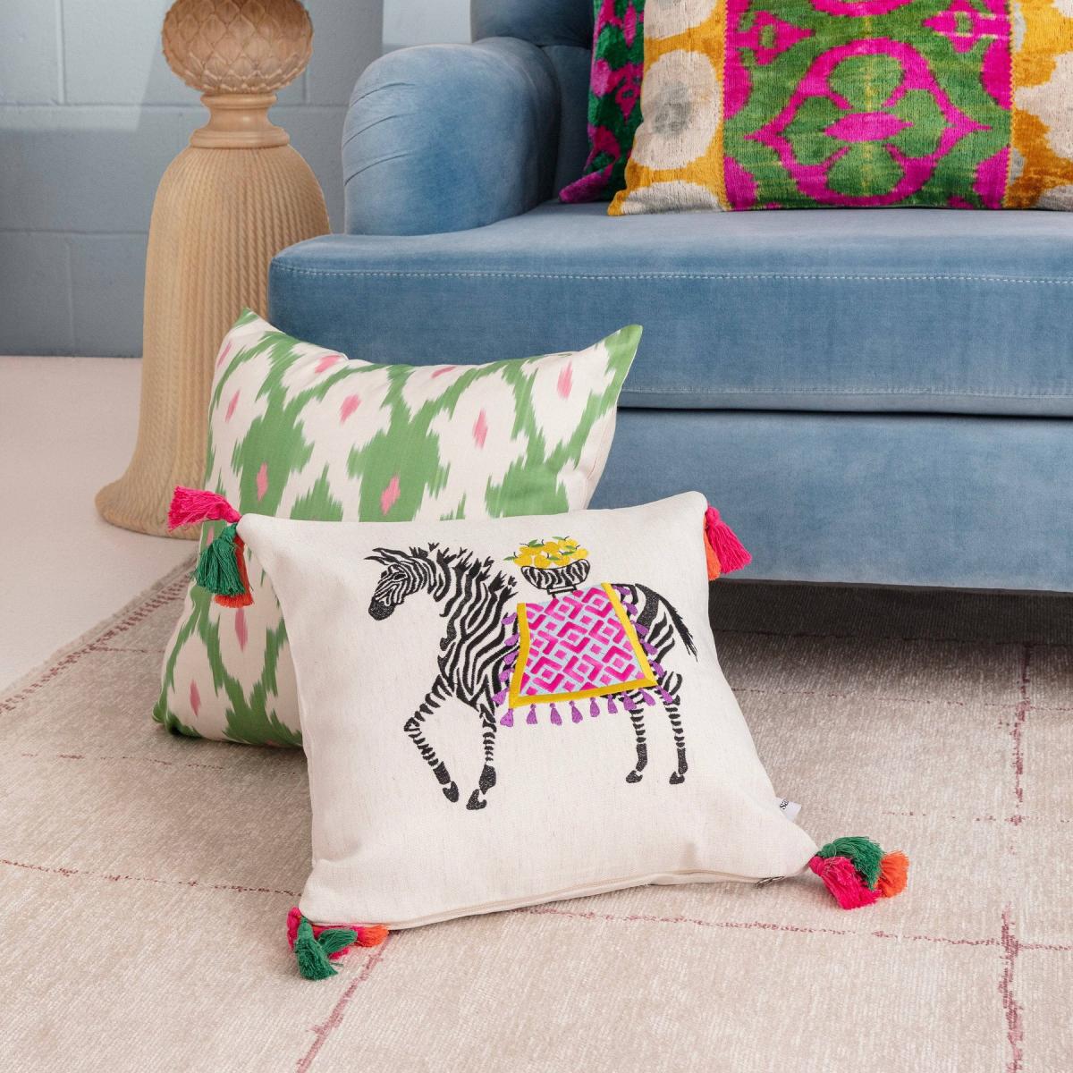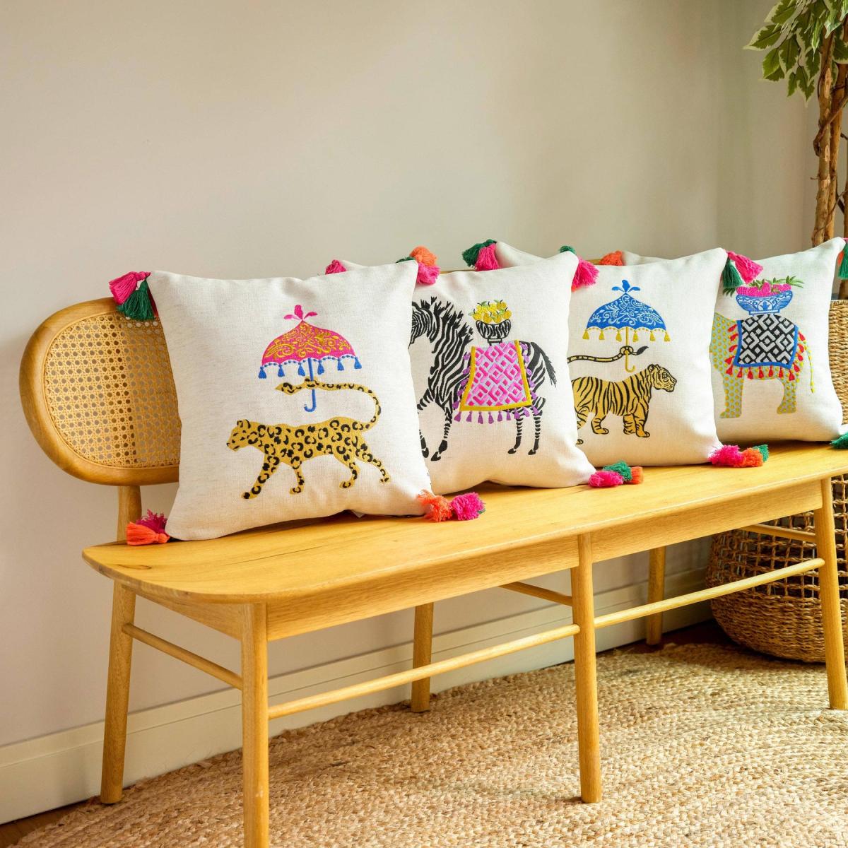 Our Jojen cushion cover with playful multicolour tassels will breath life into your living room with unadulterated maximalist style. We're piling them high and pairing with a plethora of printed cushions.