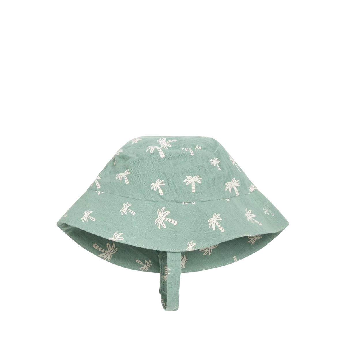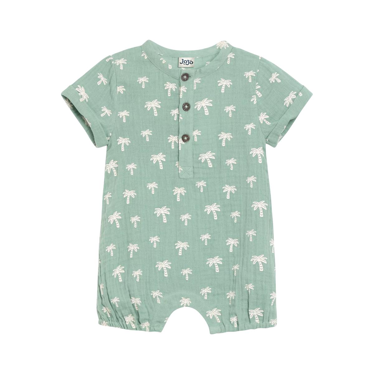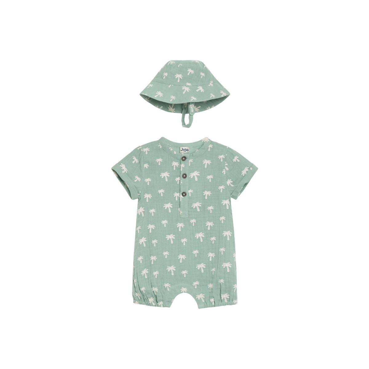 JoJo Maman Bébé Baby Cotton Cheesecloth Palm Tree Print Romper & Hat Set, Khaki