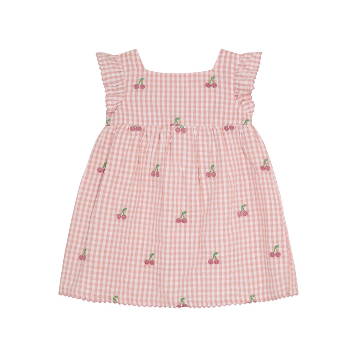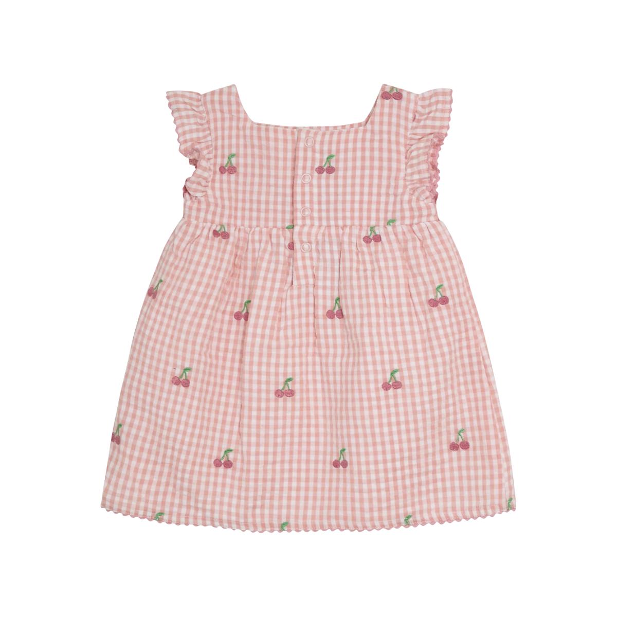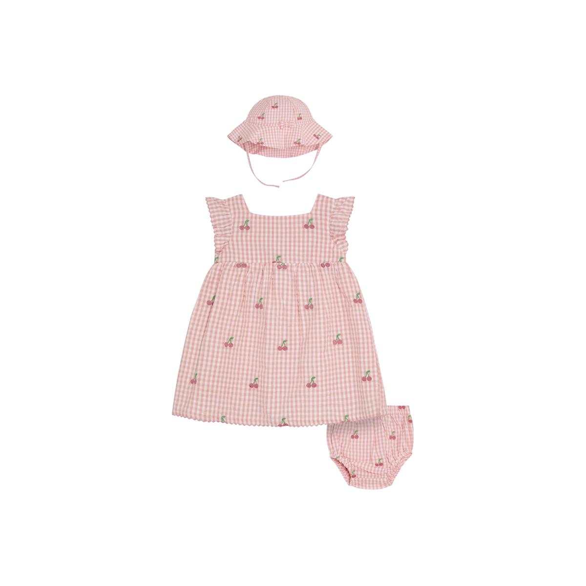 JoJo Maman Bébé Baby Cotton Cherry Embroidered Dress, Bloomers & Hat, Pink Set