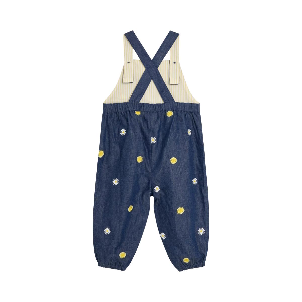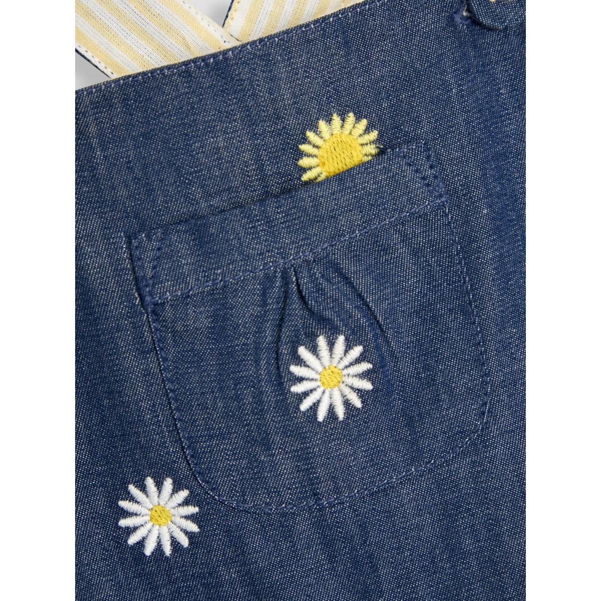JoJo Maman Bébé Baby Cotton Embroidered Daisy & Sunflower Dungarees, Chambray