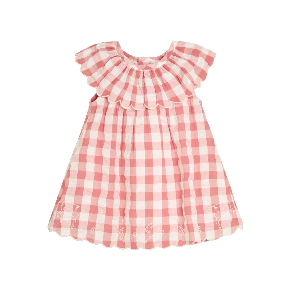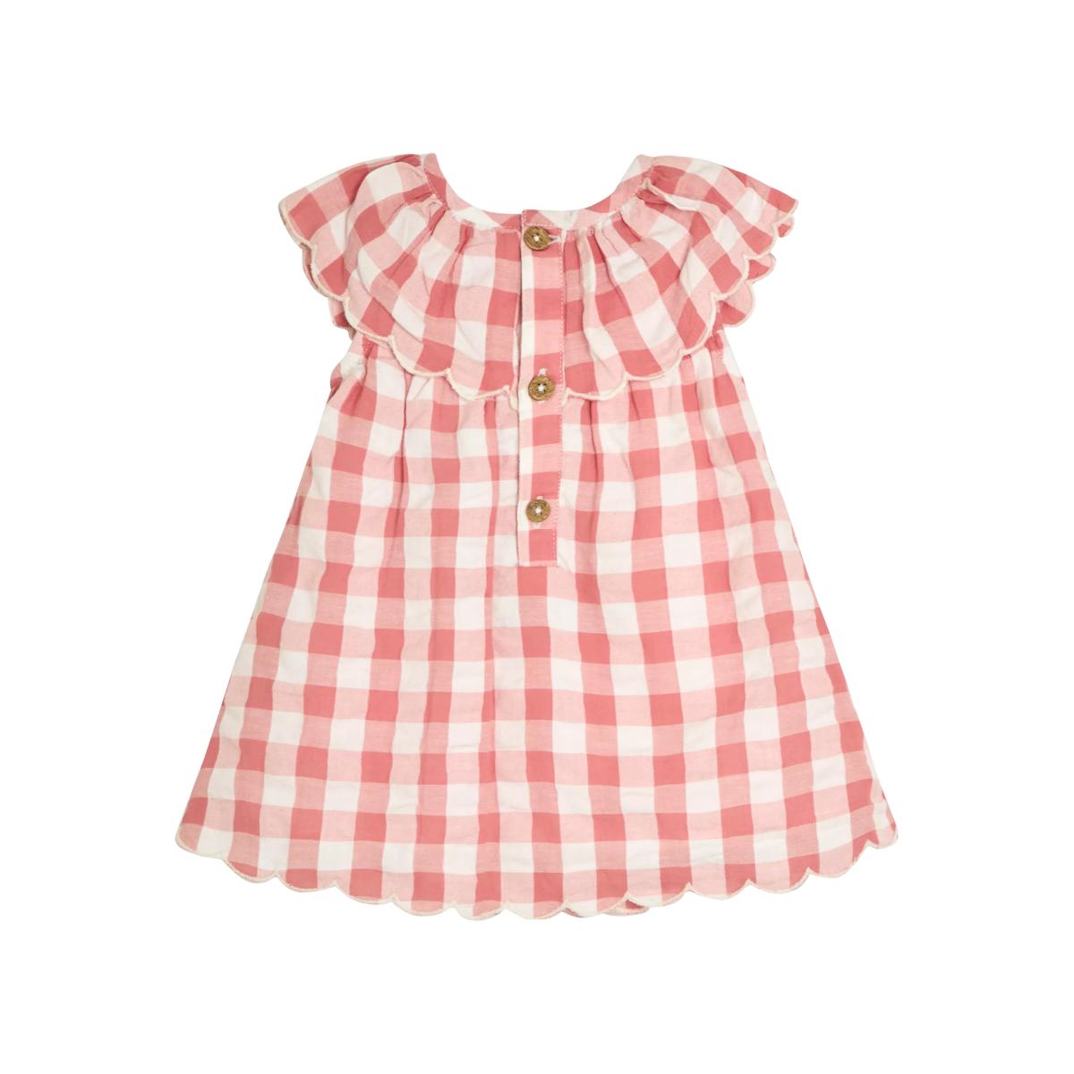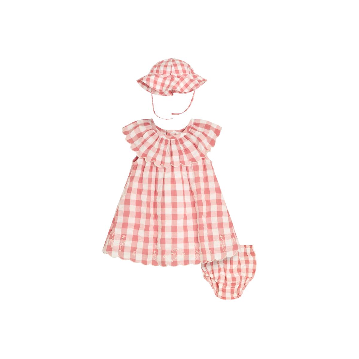 JoJo Maman Bébé Baby Cotton Gingham Scallop Trim Dress, Bloomers & Hat Set, Pink