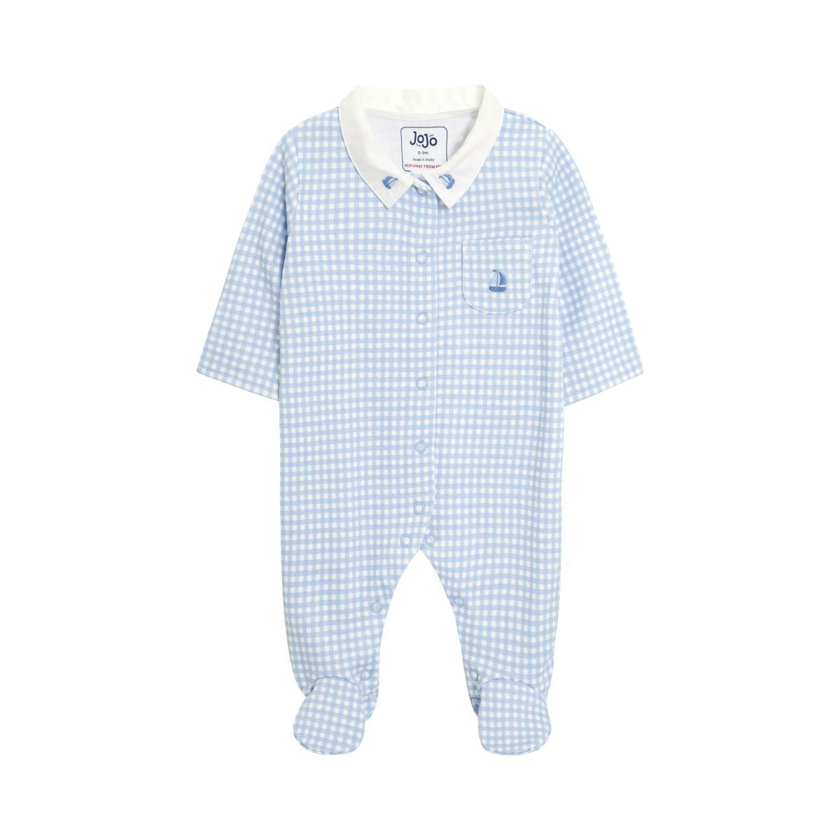JoJo Maman Bébé Baby Cotton Gingham Sleepsuit, Blue