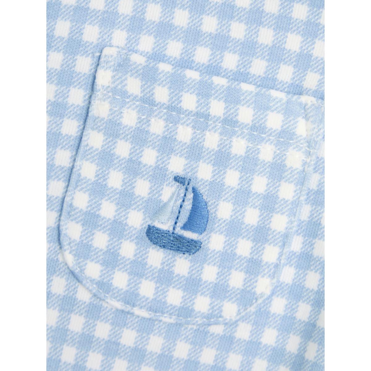 This cotton gingham sleepsuit showcases embroidered sailboat motifs and a super smart contrast collar. Popper fastenings are handy for easy night changes.