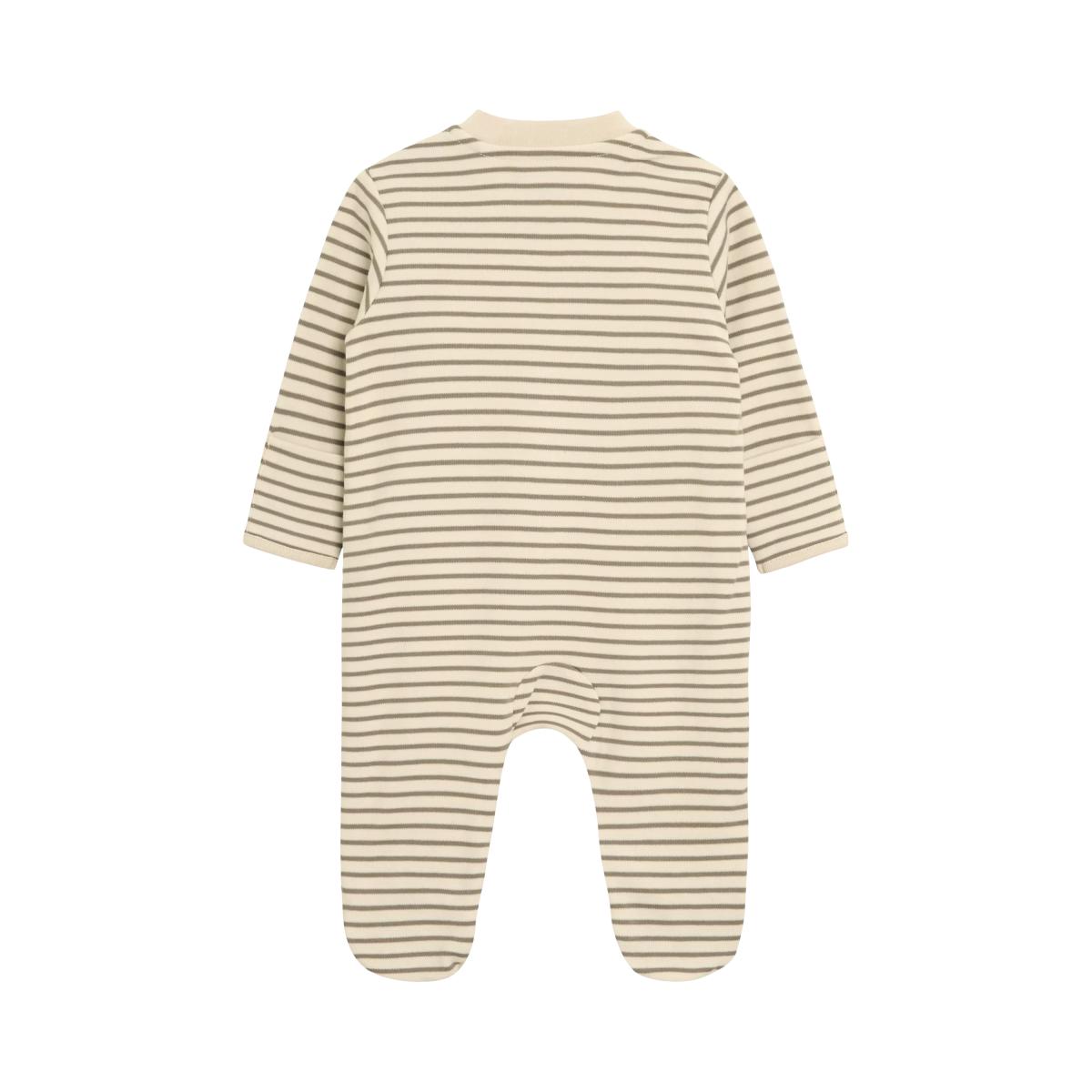 Subtle stripes and fun applique details make this sleepsuit a soft and snuggly favourite for little snoozers. The footed design keeps little toes warm while the two way zip makes night changing oh-so easy.