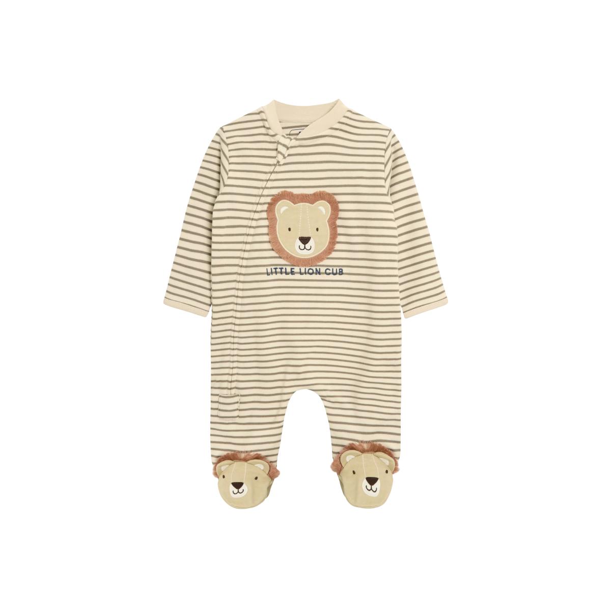 JoJo Maman Bébé Baby Cotton Lion Applique Sleepsuit, Ecru