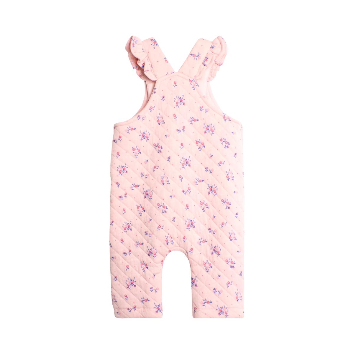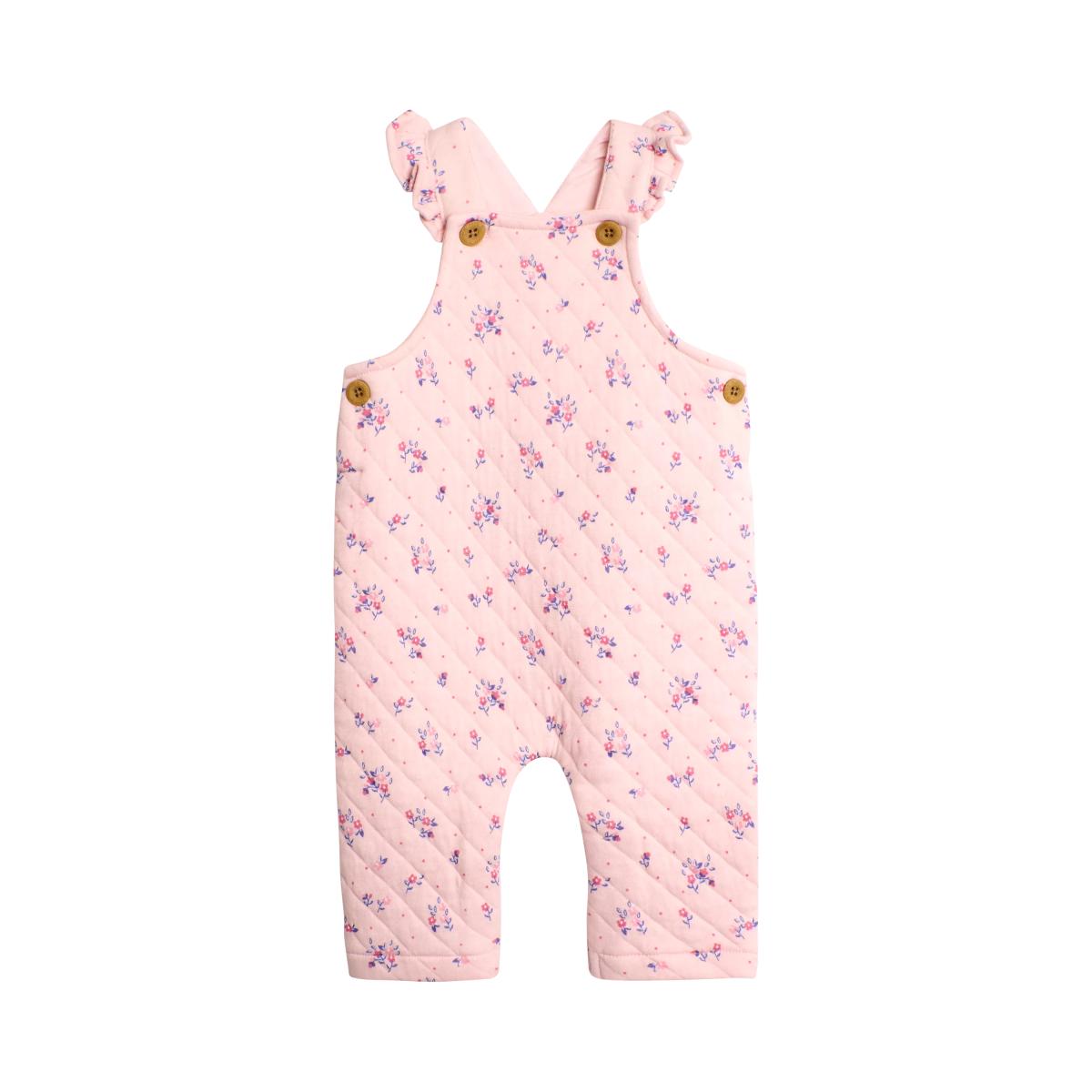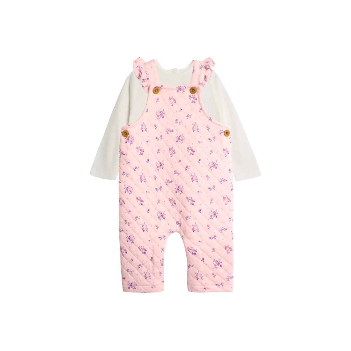 JoJo Maman Bébé Baby Cotton Quilted Foral Dungarees & Top Set, Pink