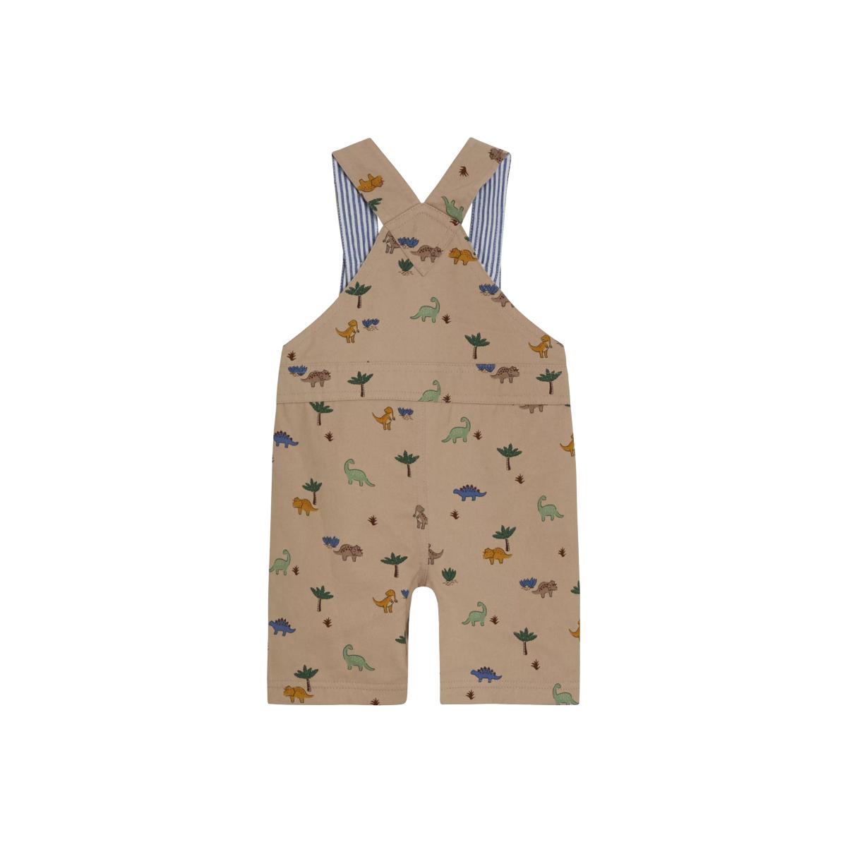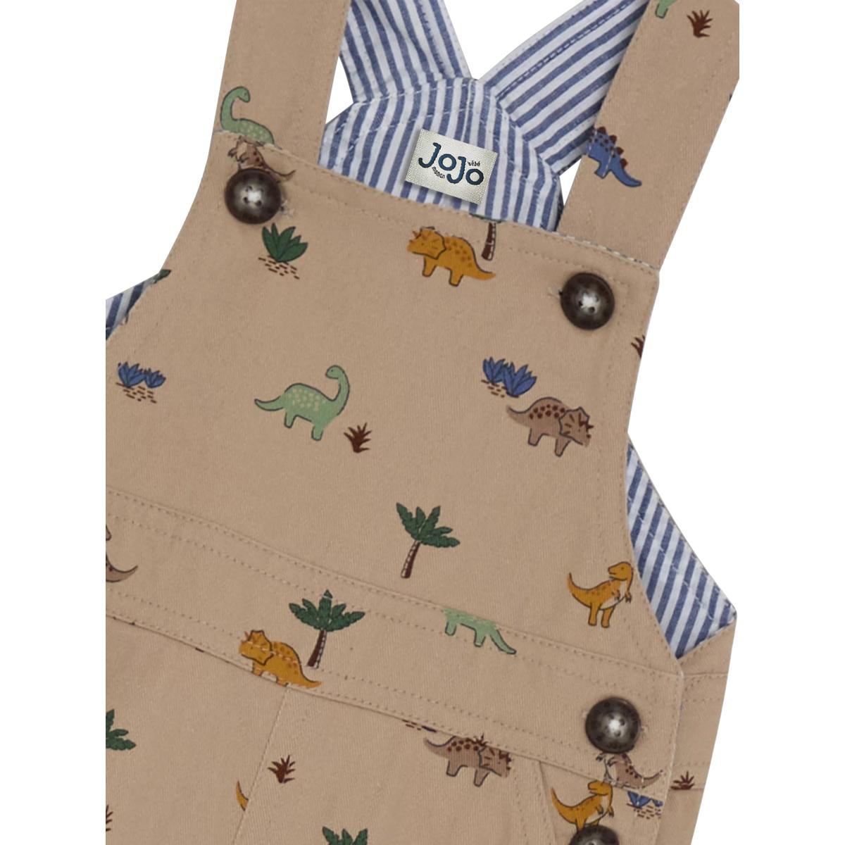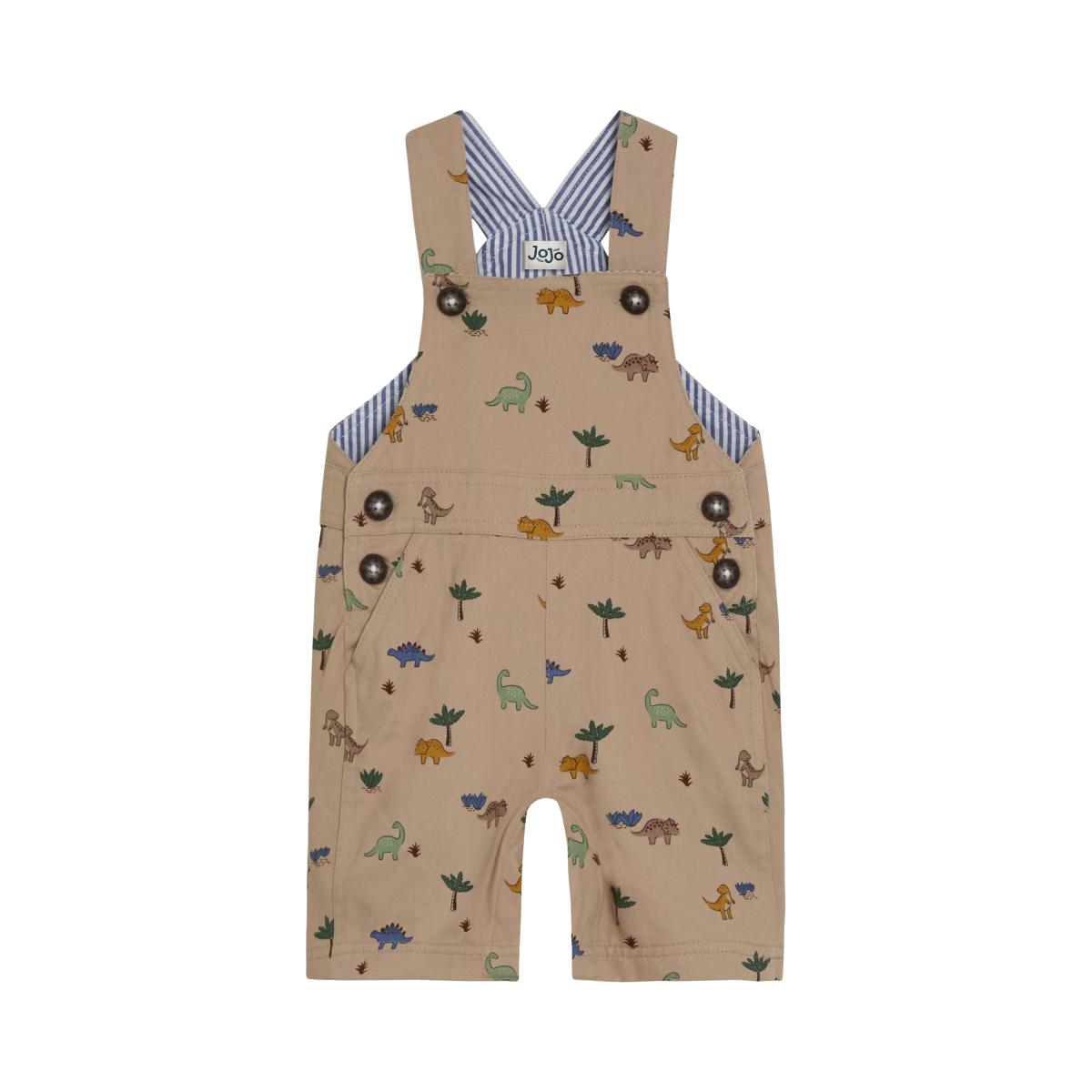 JoJo Maman Bébé Baby Cotton Twill Dinosaur Print Dungarees, Stone