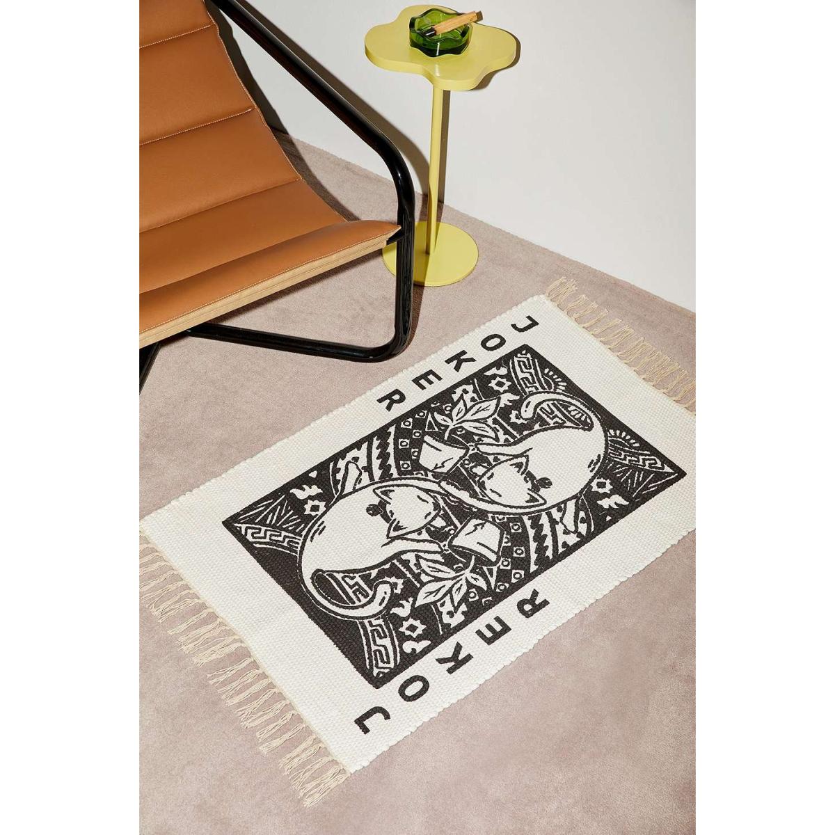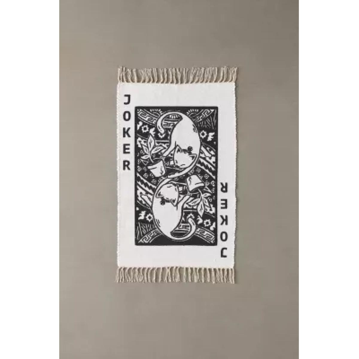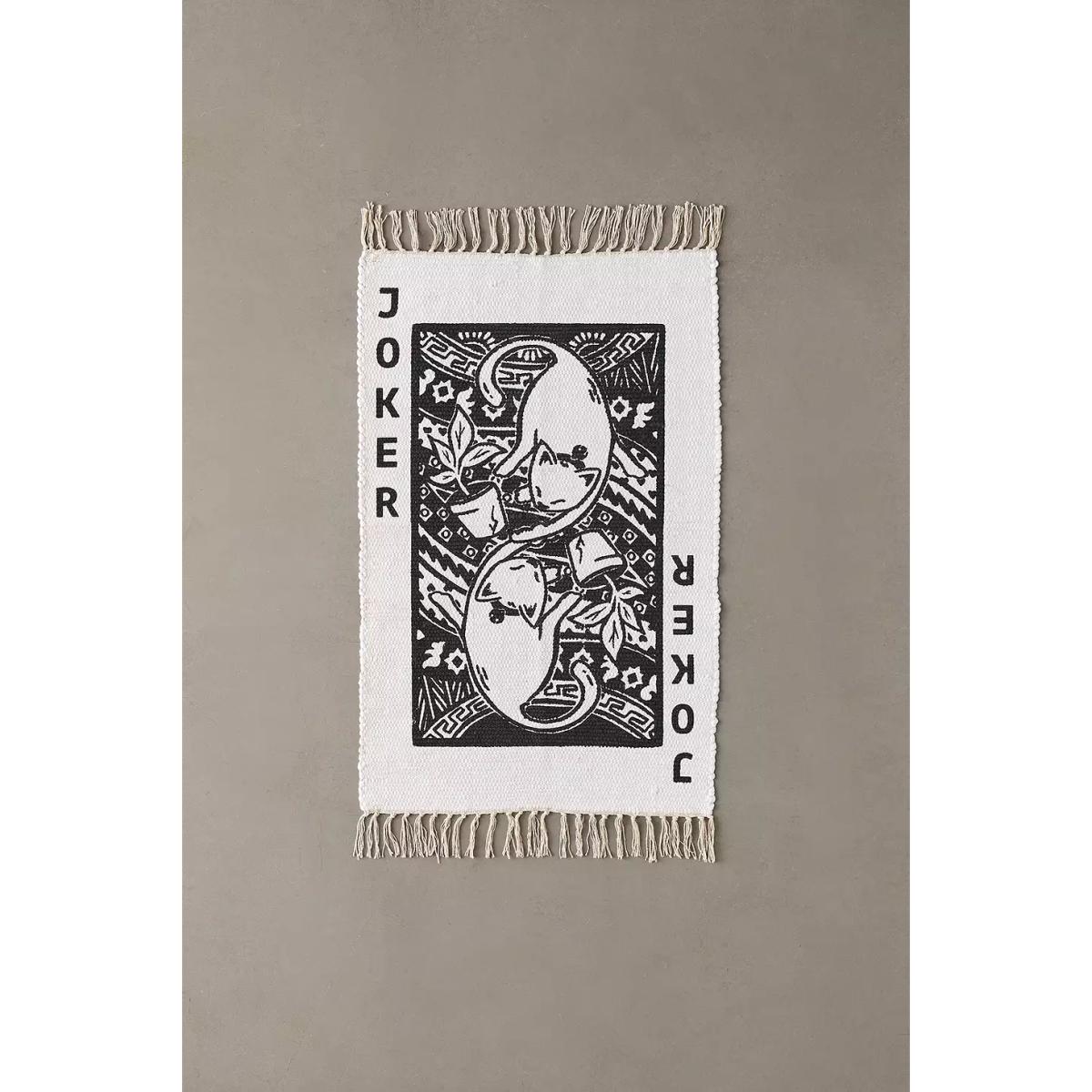 This rug takes inspiration from the joker playing card for a playful touch of home decor. Hand woven from cotton, it includes two cat motifs and fringed edges. **Content + Care** \- 100% Cotton- Spot clean **Size** \- 2x3ft