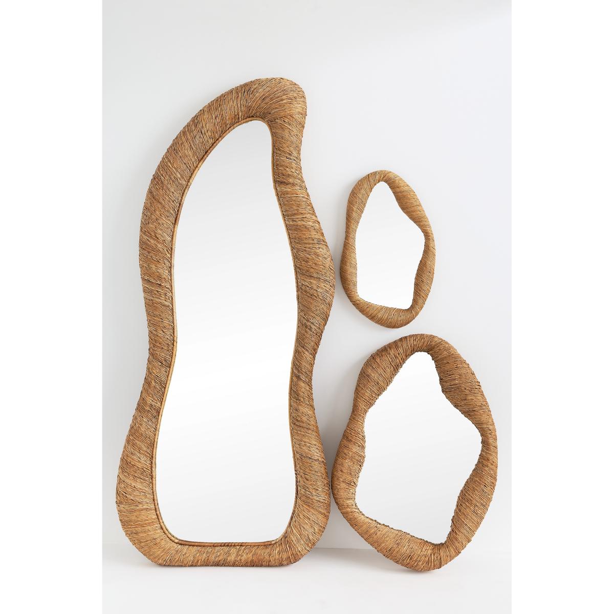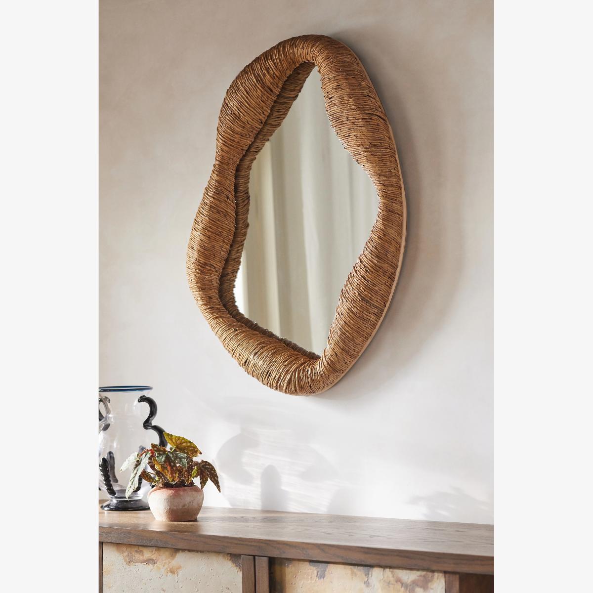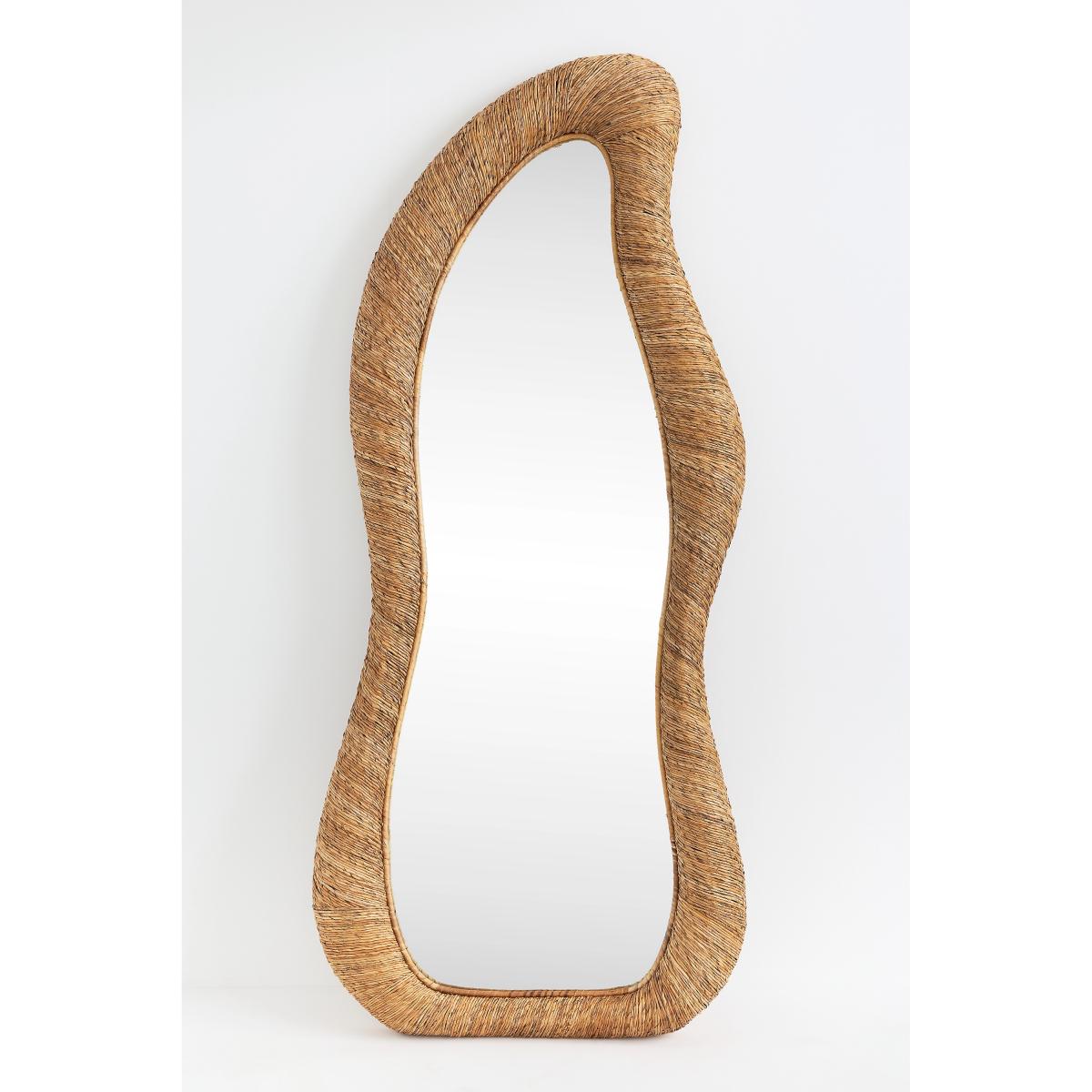 The Jolene Mirror features an undulating silhouette wrapped in natural rattan, bringing organic texture and sculptural elegance to any space. * Damp-rated * Rattan, MDF, mirrored glass * Due to the nature of this piece, minor variations in the reflection can occur along the edges of the glass * Fitted with a ready-to-hang D-ring; hanging hardware included * Floor mirror is intended to lean against a wall; do not hang * Wipe clean * Imported