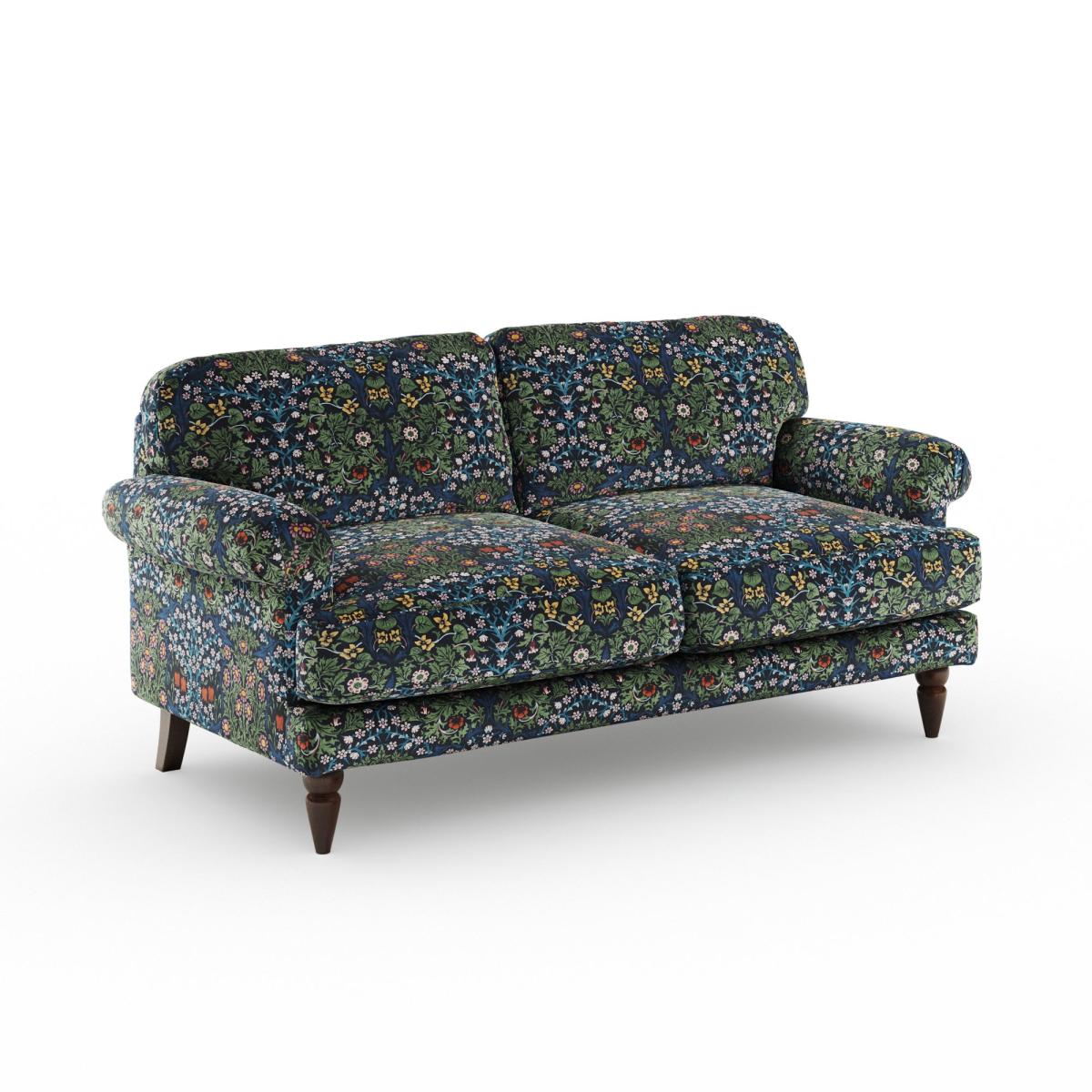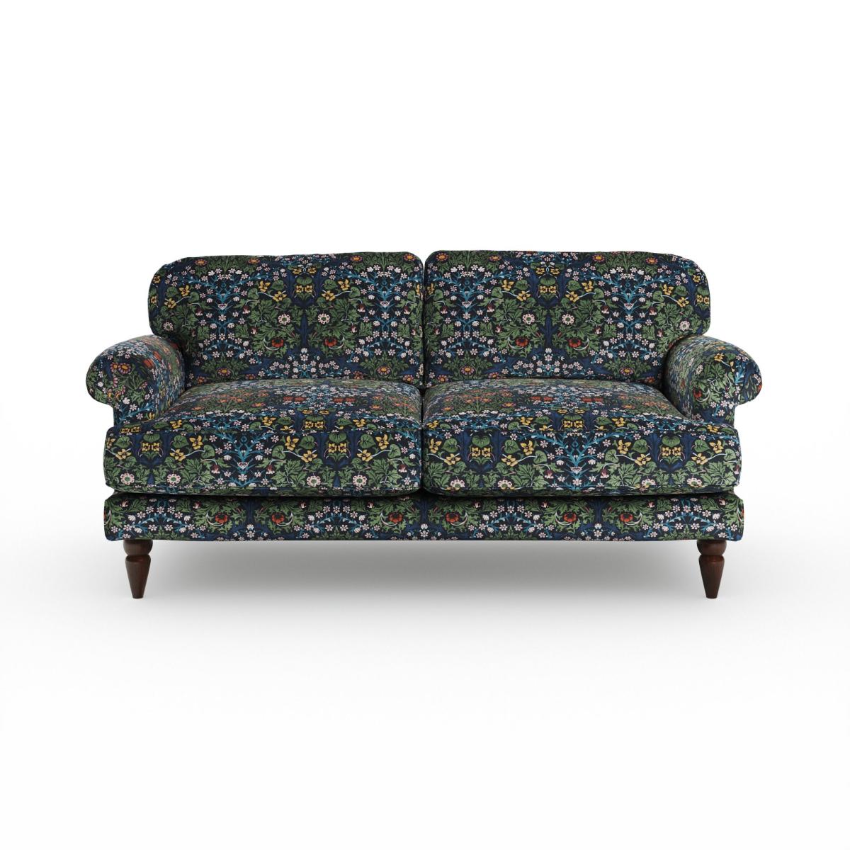 * William Morris print upholstery* Scroll arms* Pleated arm front* Fibre filled seat* Solid Oak feet A Dunelm design upholstered in a William Morris print, this piece is accented by the iconic William Morris Blackthorn design. This 3 seater sofa features a timeless scroll arm design and a beautifully pleated arm front. The fibre seat and back cushions provide exceptional comfort, while the solid oak wooden feet add a touch of natural elegance and sturdy support. Disclaimer:This product is not pattern matched, pattern may vary from photo.