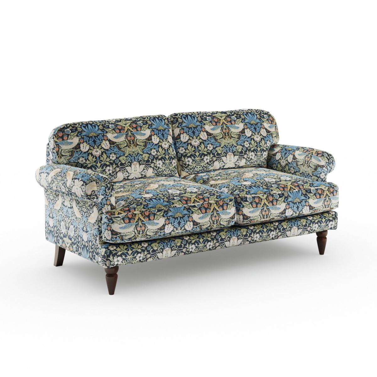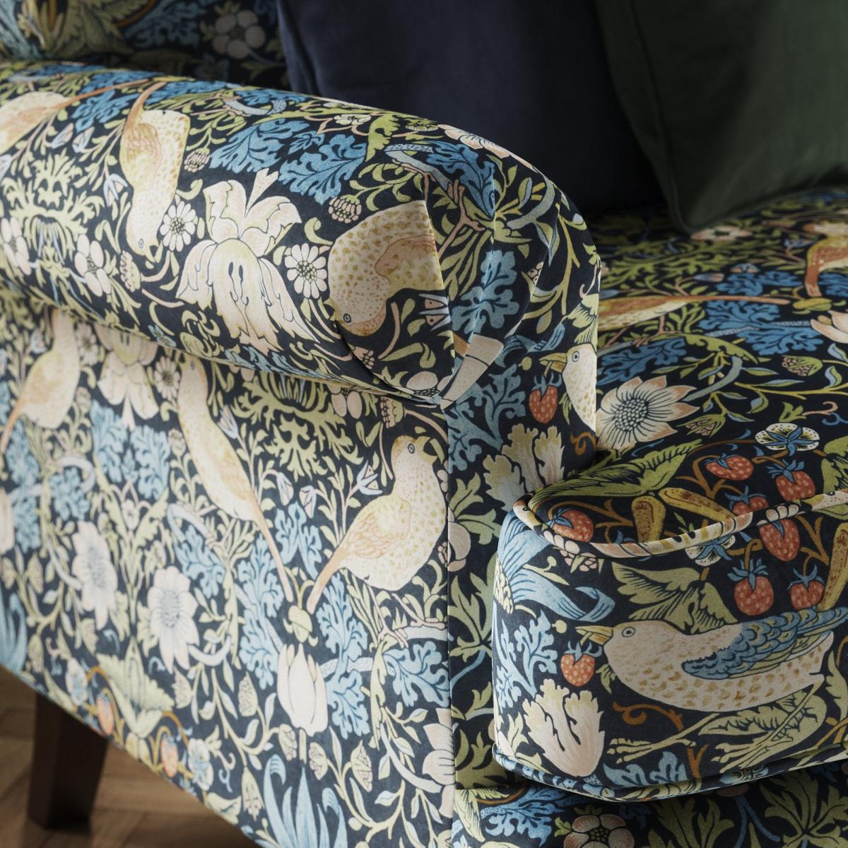 Jolene William Morris Strawberry Thief Print Velvet 3 Seater Sofa Midnight