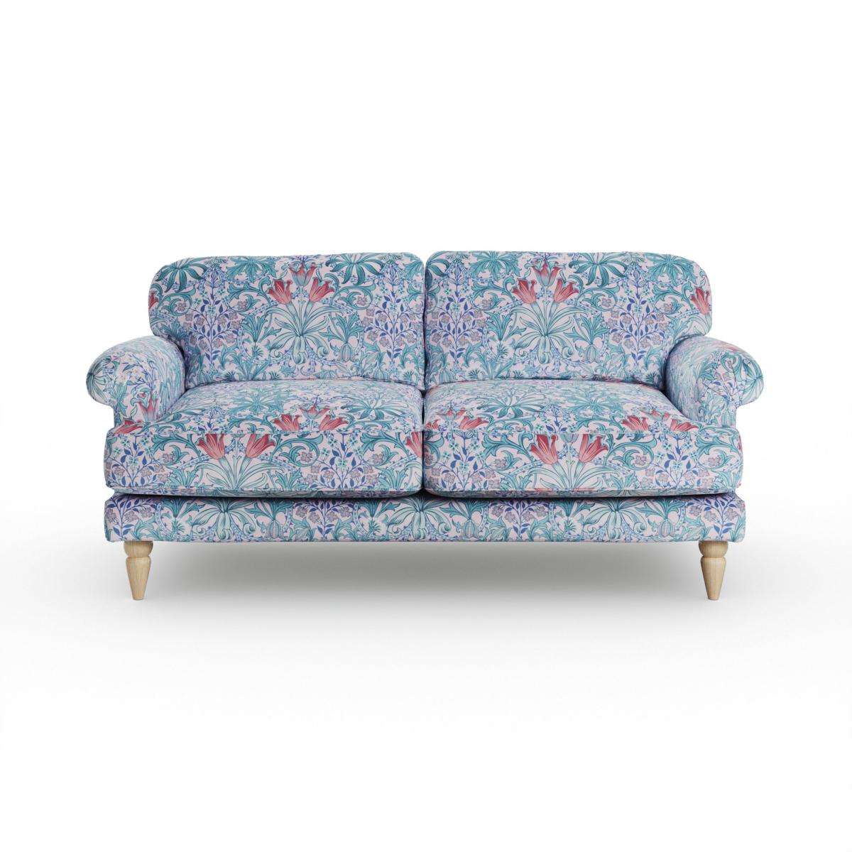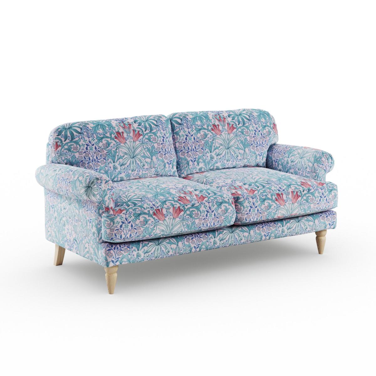 * William Morris print upholstery* Scroll arms* Pleated arm front* Fibre filled seat* Solid Oak feet A Dunelm design upholstered in a William Morris print, accented by the stunning William Morris Woodland Weeds Velvet, this 3 seater sofa features a timeless scroll arm design and a beautifully pleated arm front. The fibre seat and back cushions provide exceptional comfort, while the solid oak wooden feet offer sturdy support and a touch of natural elegance. Disclaimer:This product is not pattern matched, pattern may vary from photo.