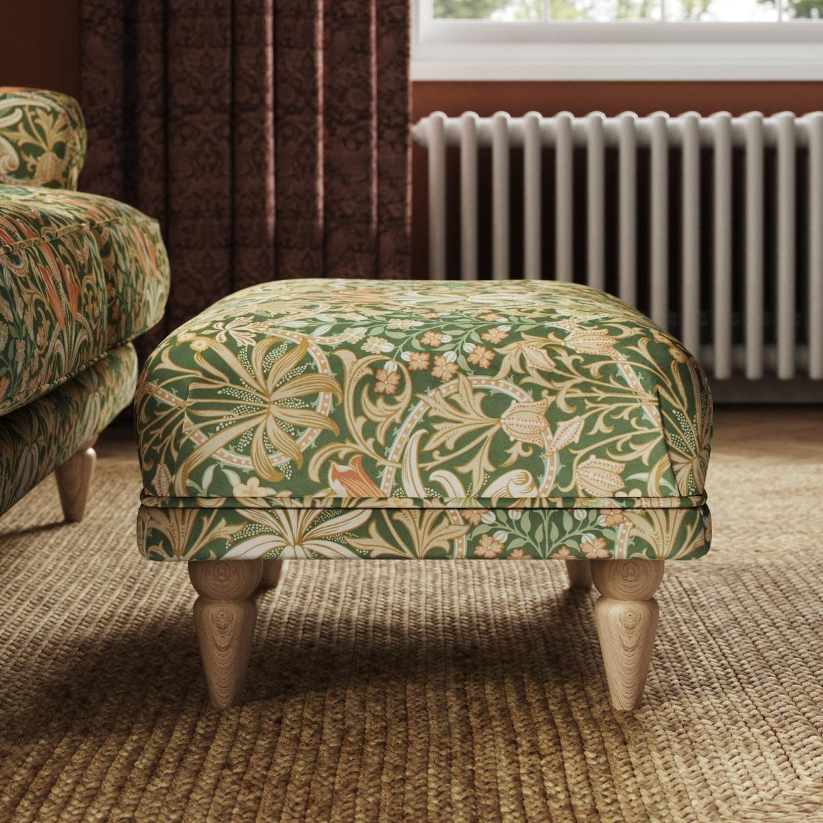 Jolene William Morris Woodland Weeds Print Velvet Footstool Woodland Weeds Fennel