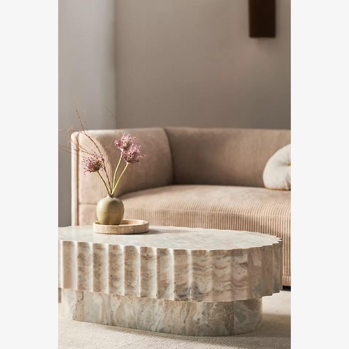 Featuring large, fluted edges and a solid base, the Jolie Marble Coffee Table is an eye-catching piece that's perfect for displaying books and flowers alike. Jolie Marble Coffee Table by Anthropologie