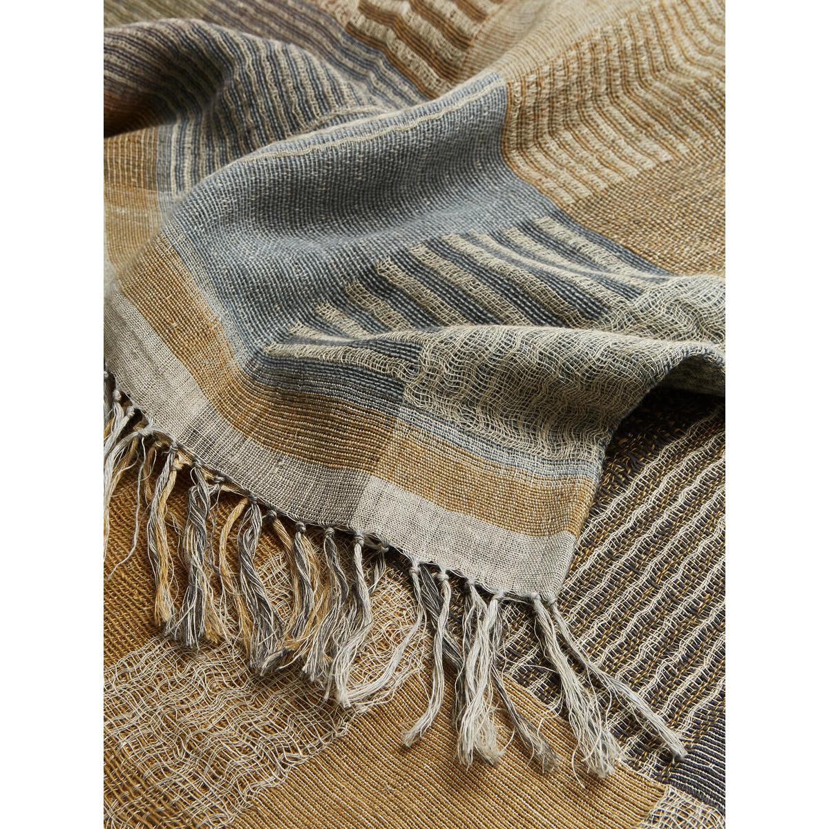 Add subtle texture and warmth to your living room with the Jolie throw. Handwoven in India from a combination of linen and cotton for a luxurious hand feel, it has a block striped design in muted tones that hark back to the graphic textiles of Soho House Holloway. Woven cotton and linen throw Block stripe pattern Multicoloured Subtle fringing As seen in Soho House Holloway