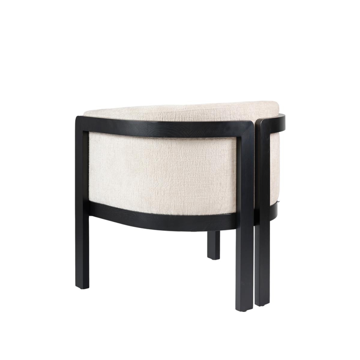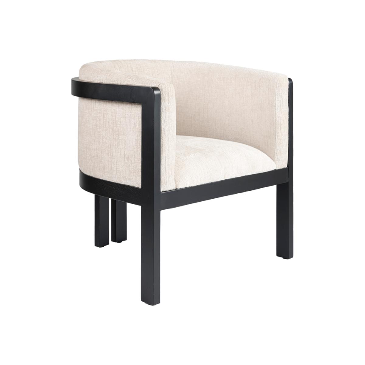 A refined and elegant tub chair. Comfortable sprung seat with generous deep padding. Solid ash frame and legs with matt black stained finish. Upholstered in a soft, tactile, chenille fabric. Supplied fully assembled.