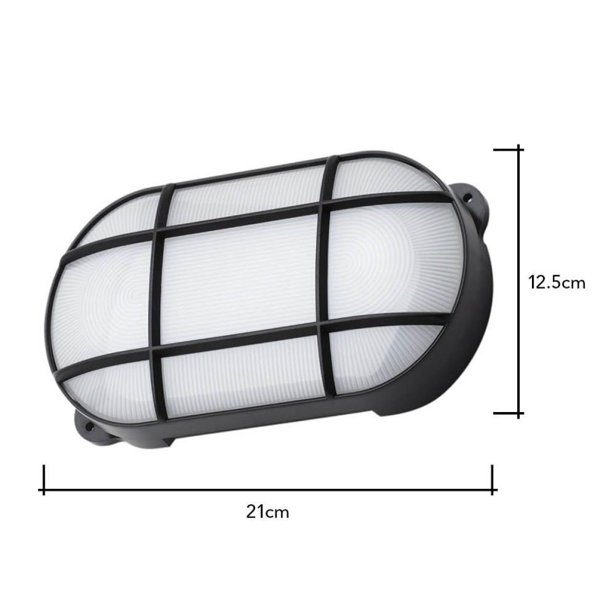 The Jon 15 Watt LED Oval Grid Outdoor Bulkhead Light is the perfect fitting for bringing an industrial flair to your exterior lighting arrangements, with a black finish and a caged design embodying a nautical theme. The white shade illuminates with a practical light and projects a pool of task lighting throughout your outdoor spaces. With integrated LED, this fitting brings an ease and simplicity to your lighting - ensuring you will never need to replace a bulb.