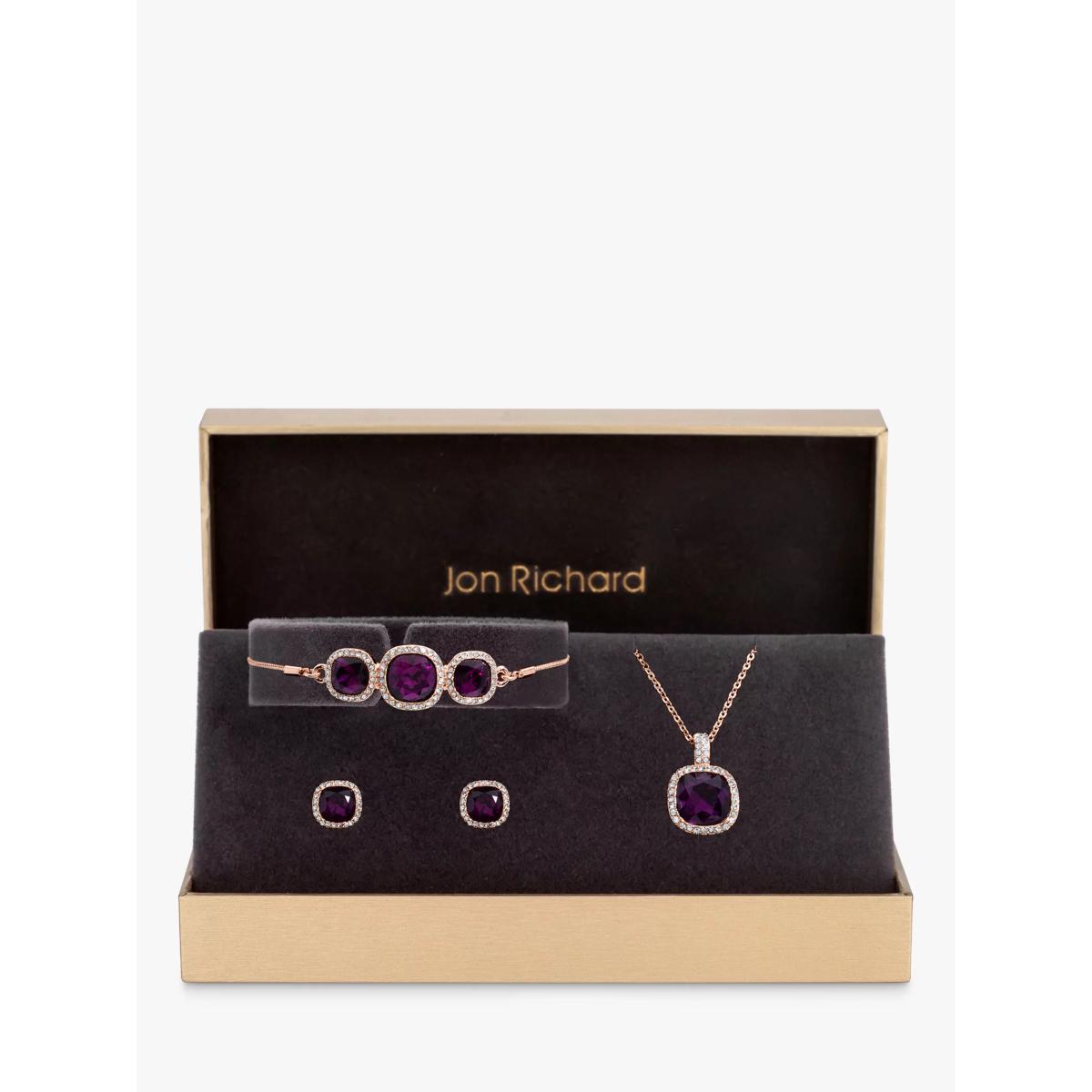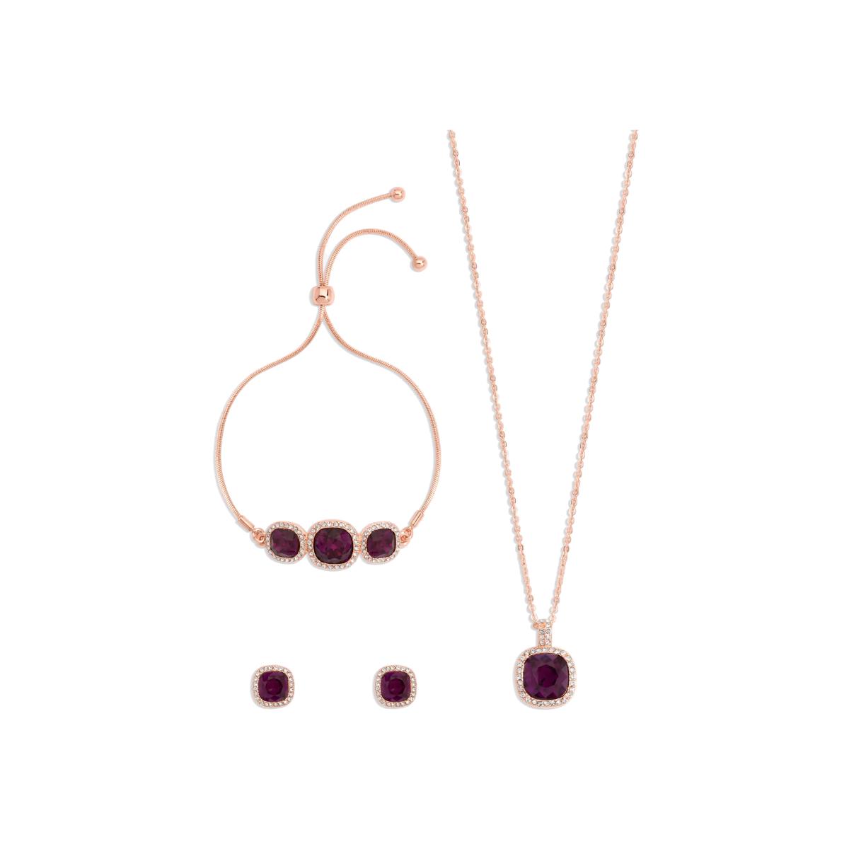Jon Richard Cushion Cubic Zirconia Pendant Necklace, Stud Earrings and Toggle Bracelet, Rose Gold/Purple