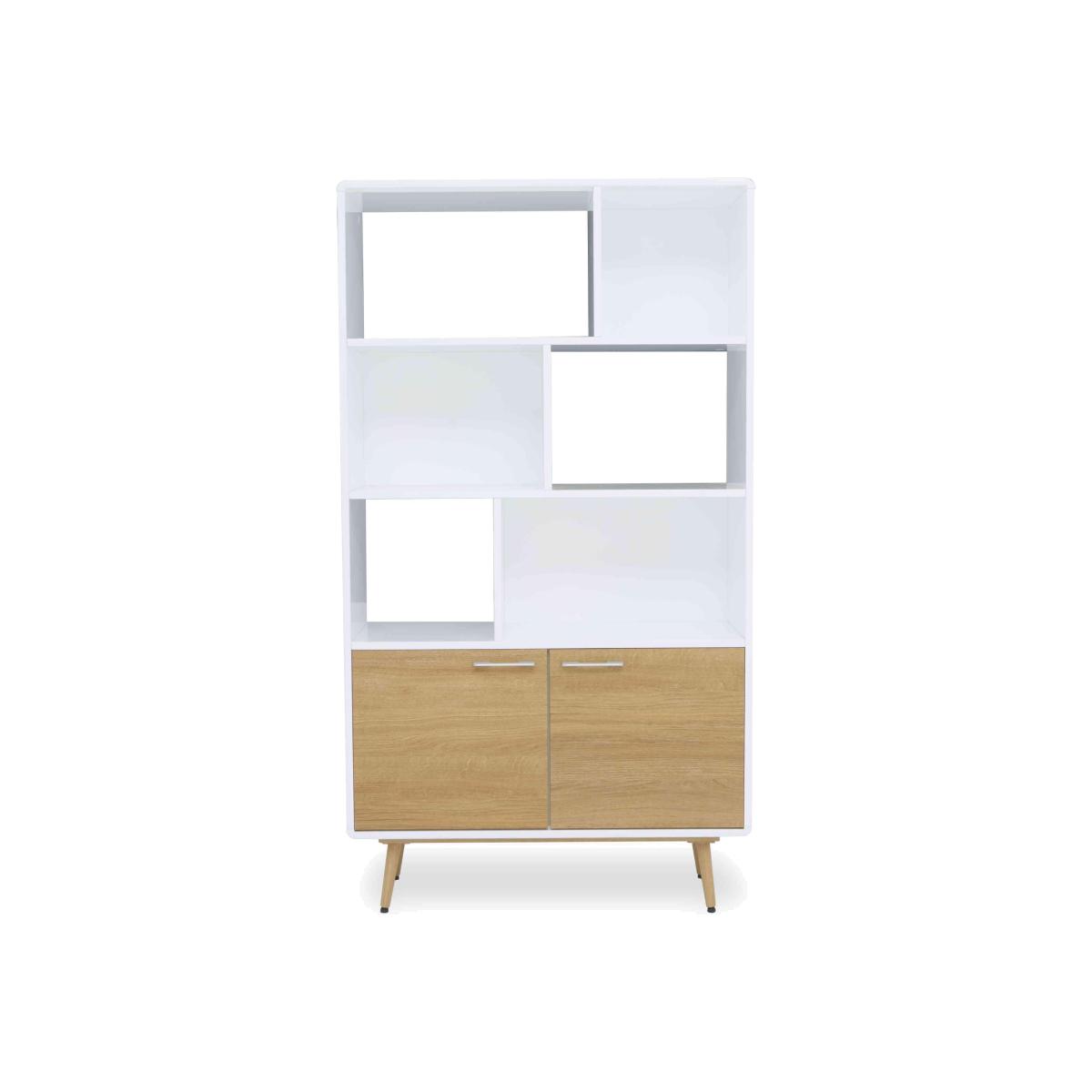 Perfectly capturing today’s coastal chic trend – with more than a touch of Scandi style – our Jonah range makes it easy to transform dining rooms and living spaces into havens of magazine-worthy style. This incredibly well-priced furniture collection showcases oak-effect and white high-gloss finishes, and includes two sizes of extending dining table, dining sets and sideboards as well as living room storage pieces and occasional tables. Mix and match to find the perfect combination of contemporary style and practical storage for your home. The Jonah range is a Furniture Village online exclusive. This stylish bookcase combines asymmetrical shelving with roomy cupboard storage space. A real statement piece, it easily sets the tone for a coastal-style living space. Incredible value. Why you'll love it Contemporary coastal style for effortlessly fashionable homes. Exceptional value for money. On-trend glossy white and oak-effect finish with slender angled legs. Superb quality with a sturdy metal frame and legs. Combines shelving with cupboard storage. Cupboard door is soft closing. A Furniture Village online exclusive. This bookcase is part of the Jonah range. What you need to know Double-door cupboard has 1 fixed shelf. The high-gloss surface may reveal the polishing process in the form of small scratches. Avoid placing in direct sunlight. Do not use abrasive cleaning products. Wipe clean with a damp cloth and dry with soft duster. We recommend using placemats and coasters at all times. Shop the complete Jonah range for dining sets, TV units, occasional tables and more. WARNING!