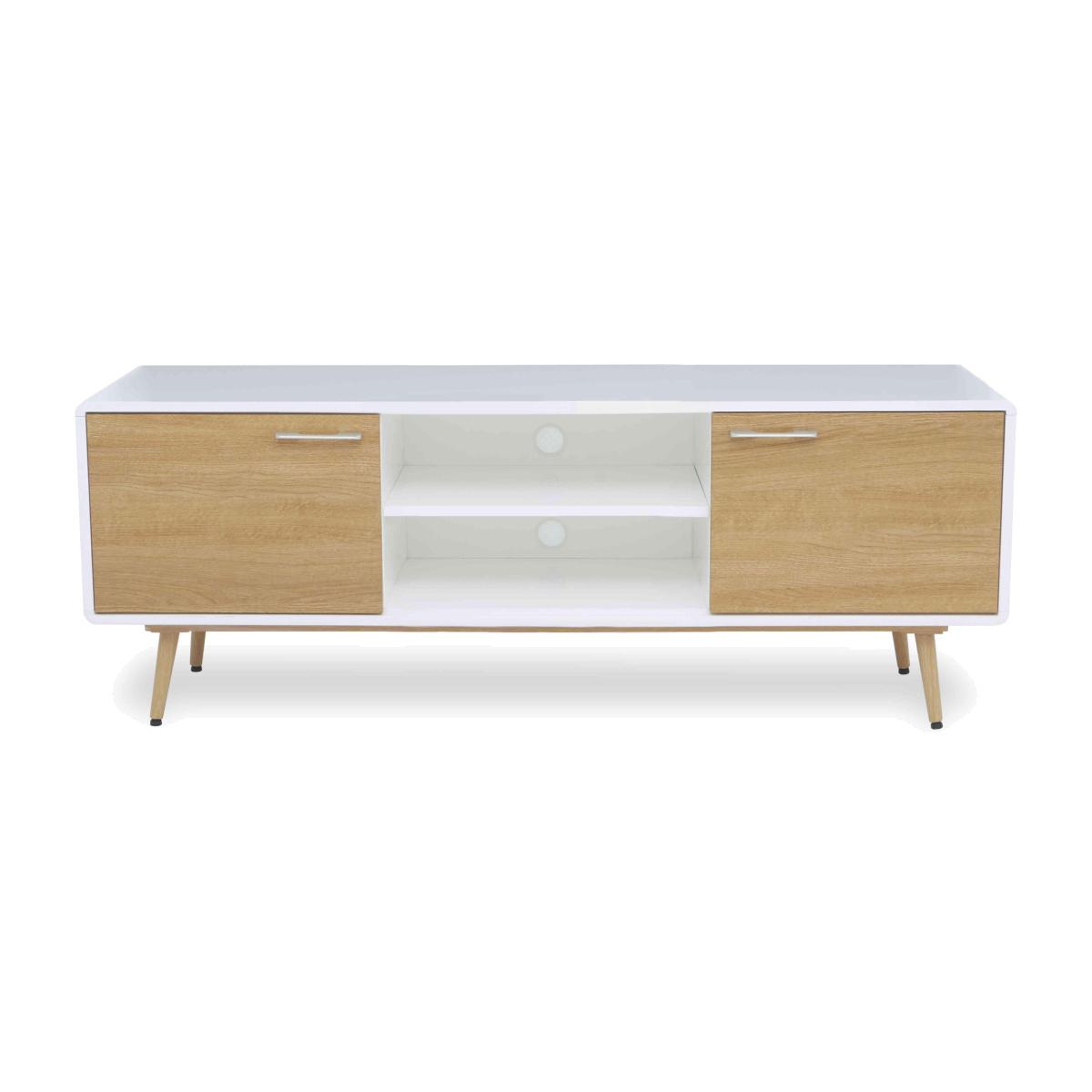 Perfectly capturing today’s coastal chic trend – with more than a touch of Scandi style – our Jonah range makes it easy to transform dining rooms and living spaces into havens of magazine-worthy style. This incredibly well-priced furniture collection showcases oak-effect and white high-gloss finishes, and includes two sizes of extending dining table, dining sets and sideboards as well as living room storage pieces and occasional tables. Mix and match to find the perfect combination of contemporary style and practical storage for your home. The Jonah range is a Furniture Village online exclusive. For media storage with a chic contemporary feel, our Jonah TV cabinet is hard to beat. We love its oak-effect and white glossy finish and, of course, its great-value price. Why you'll love it Contemporary coastal style for effortlessly fashionable homes. Exceptional value for money. On-trend glossy white and oak-effect finish with slender angled legs. Superb quality with a sturdy metal frame and legs. 2 cupboards plus alcove with shelf. Cupboard doors are soft closing. A Furniture Village online exclusive. This TV cabinet is part of the Jonah range. What you need to know 2 single-door cupboards each have 1 fixed shelf. The high-gloss surface may reveal the polishing process in the form of small scratches. Avoid placing in direct sunlight. Do not use abrasive cleaning products. Wipe clean with a damp cloth and dry with soft duster. We recommend using placemats and coasters at all times. Shop the complete Jonah range for dining sets, sideboards, occasional tables and more. WARNING!