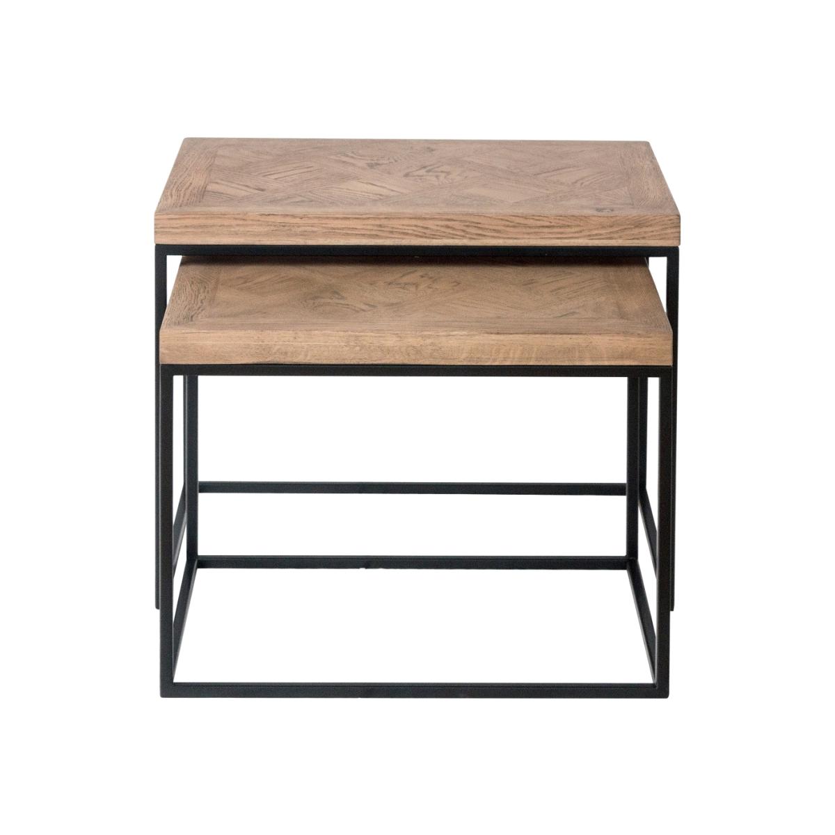 This stack of two tables is exquisitely designed and practical. The tables feature geometric metal frames that gives them character and modern charm. Aged grey oak and gunmetal grey design that strikes the perfect balance between vintage and contemporary Delicate parqueted detailing. Gunmetal grey legs for firm support. Comes ready assembled.