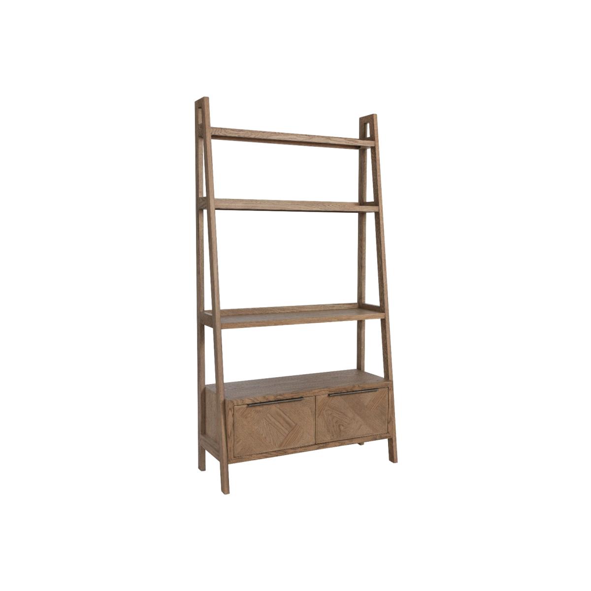 The retro Jonah features sleek shapes and uniquely angled metal legs. An original basket weave parquet finish adds texture to the clean silhouette—a stunning bookcase for modern or industrial homes.• Constructed from oak, pine, oak veneer and metal• Basketweave parquet finished in aged grey oak• Dovetailed drawers on metal runners for easy opening • Contemporary graphite bar handles• Requires a little easy assembly