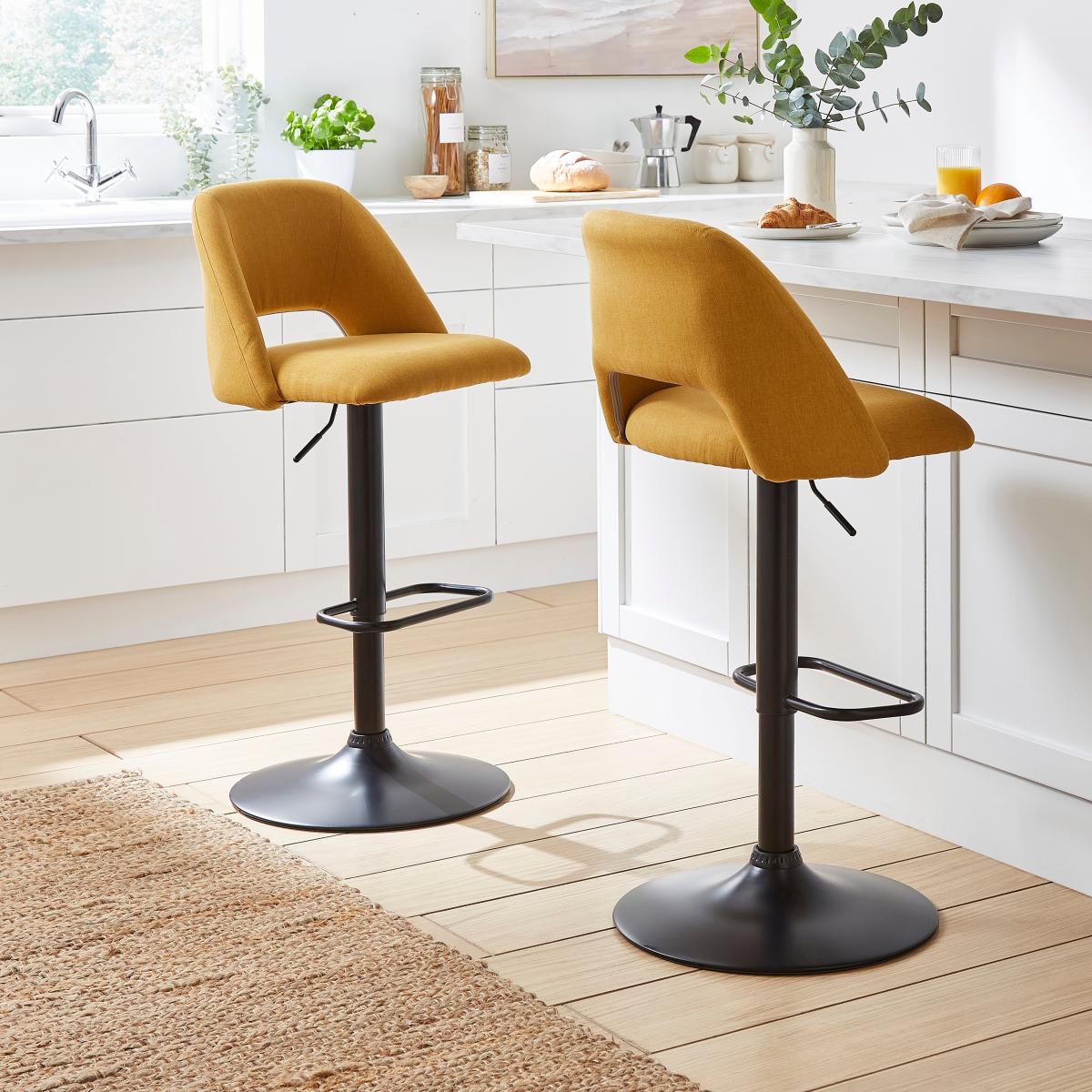 I’m a big fan of the Jonas stool in ochre because its curved back and matt-black pedestal balance comfort with a sleek, modern look. The gas-lift mechanism means you can fine-tune the height for kitchen islands or breakfast bars, while the warm fabric adds a punch of colour without overwhelming a neutral palette. Styling tip: pair it with a pale timber counter and a jute runner beneath to ground the space, then introduce a couple of brass-tone accessories or a charcoal pendant light for a hint of contrast. It works equally well in Scandi-inspired kitchens, minimalist lofts or contemporary family homes.