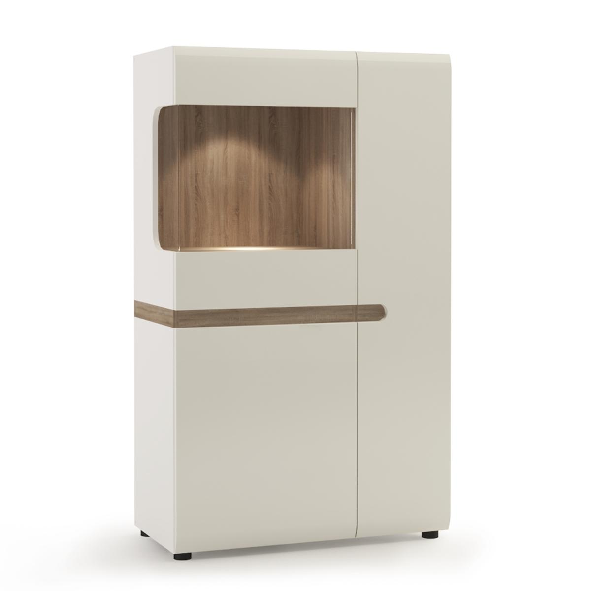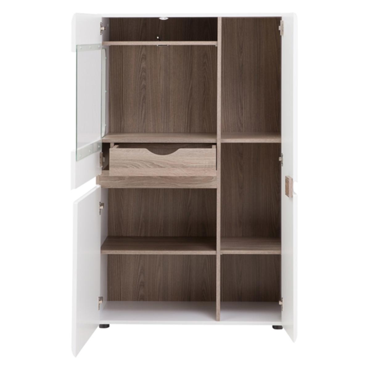 Keeping in mind style and practicality, this Jonas & James Lecce Wide Display Cabinet is made for a modern home, with white high gloss front and truffle oak trim, while providing you with a durable piece of furniture you can use every day. This magnificent wide display cabinet is packed with features such as soft close doors and drawers, adjustable shelves and ample cupboard space to store away your treasured items neatly and organised. In addition, the handle free design and its smart and sophisticated style will complement a whole array of existing home decors, adding that contemporary finishing touch your room has been looking for.